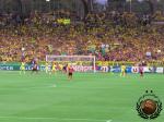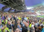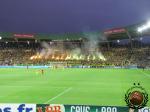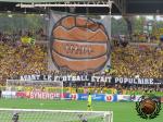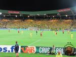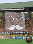 Guingamp beperkt zich tot een berg vlaggen en gezang. Het gezang zullen we de komende 90 minuten slechts sporadisch horen. Nantes heeft voorlopig op Saint-Etienne na de grootste harde kern die we in Frankrijk zien en ze gaan eigenlijk de hele wedstrijd hard.