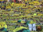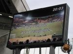 Een sjaal hebben we al snel te pakken en met nog anderhalf uur voordat de wedstrijd begint zitten wij kaar op onze tribune. Aan de overkant stroomt de harde kern goed vol en beginnen de voorbereidingen voor de tifo alvast.