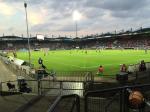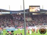 Beide ploegen zijn het seizoen niet daverend begonnen en het eerste kwartier van deze wedstrijd bied ook niet heel veel hoop op een mooie wedstrijd. De eerste helft speelt zich vooral af op de helft van de gasten zonder dat er echt levensgrote kansen te bespeuren zijn. Vanuit ons familievak aanschouwen wij dat wij het uitvak harder horen dan de King Side. Of dit te maken heeft met de scheiding van vak B laten we maar even in het midden, maar ten goede komt het de sfeer niet.