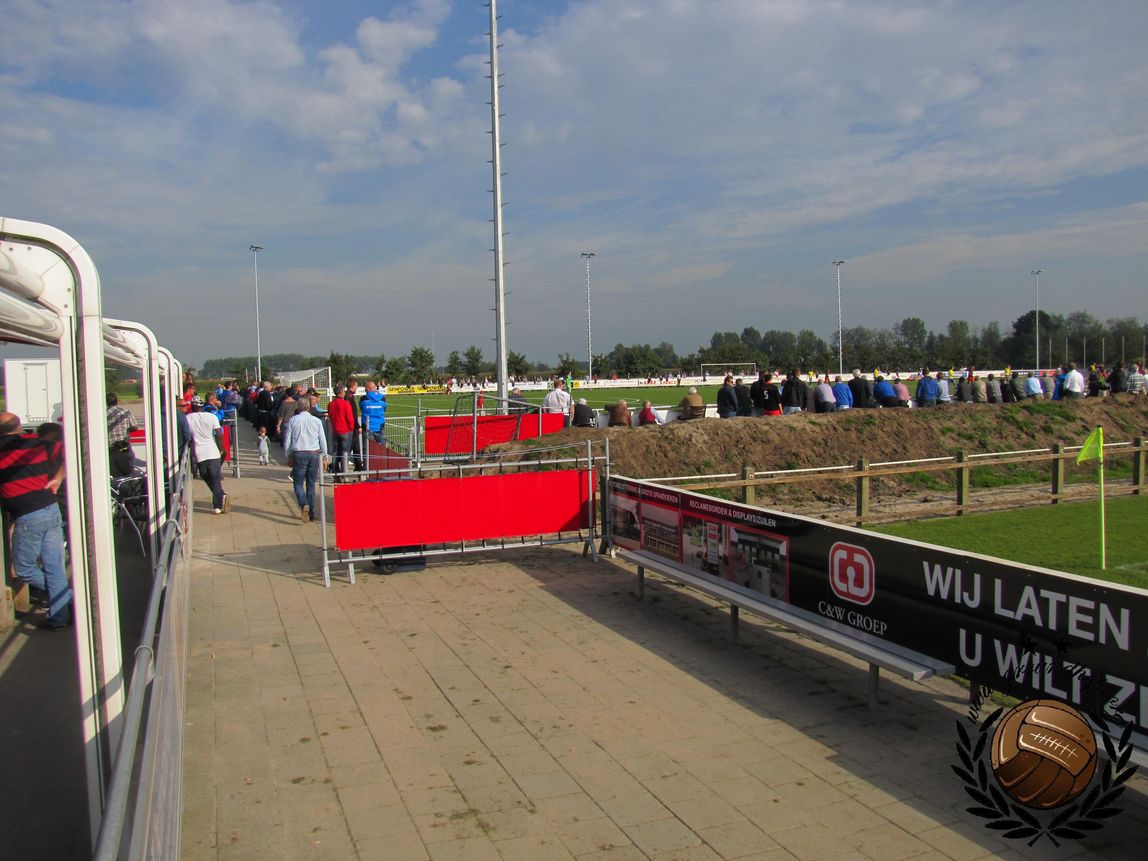 Zicht op het nieuwe hoofdveld vanaf het terras.