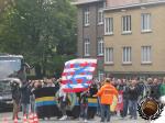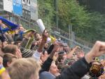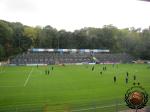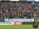Enfin, de wedstrijd is begonnen. We hopen op een mooie pot voetbal. Onze hoop werd al snel aan diggelen geschoten door beide ploegen. Het voetbal is heel slecht (zelfs wij noemen het niveau bedroevend) maar inkakken doen we niet, met dank aan de ultra’s van Union.