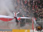 Beide teams krijgen kansen om verandering te brengen in de 2-1 stand maar zullen hier niet in slagen. Ook de keeper van Essen lukt het niet om, in een ultieme poging op het laatste fluitsignaal, de bal tegen de touwen te werken en zo mag RWO zich derbysieger noemen. RWE druipt af en de fans halen verhaal bij de spelers voor hun wanprestatie in de eerste helft. Die Kleeblätter vieren groot feest en wij schieten nog een paar mooie plaatjes van het Niedderrhein stadion. Wij nemen afscheid van dit stadion, in de wetenschap dat bij een eventuele volgende keer, er een hypermoderne nieuwe hoofdtribune staat.