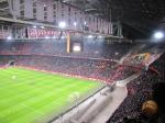 Als het feest voorbij is begeven wij ons snel door de stromende regen naar het overdekte stadion. Met dit hondenweer is het dak uiteraard gesloten dus daaraan zal het vandaag niet liggen. Na de wanvertoning van Heracles in Enschede gaan wij dan ook uit van een gemakkelijke zege van Ajax. Het stadion is nog niet driekwart gevuld maar blijkbaar hebben wij het mis. Meer dan 44 duizend toeschouwers zijn “aanwezig” bij de aftrap van deze wedstrijd.