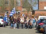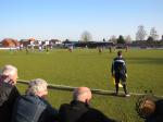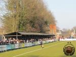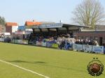 Het terrein is schattig te noemen en we kiezen (net als gisteren) onze plekken aan de hand van de zon. We pakken een pint en zien langzaamaan zo’n 750 man binnen druppelen om deze derby te aanschouwen. Toch nog een redelijk aantal als je bedenkt dat het om de 4e divisie gaat.