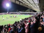 Het knusse stadionnetje is vrijwel uitverkocht voor deze topper op de vrijdagavond. Ook het uitvak zit goed vol, ondanks dat het toch een rit van ruim 300 kilometer is van Grimsby naar Cheltenham. De gasten hebben een rookpot en protestdoeken tegen BT Sports, dat de wedstrijd op vrijdagavond heeft gepland voor een live tv-uitzending.
