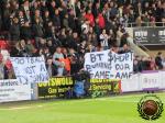 Via een toeristische route trokken we richting het World of Smile Stadium Whaddon Road. Ruim op tijd konden we onze tickets af halen en na een kleffe bak patat met slappe viscake naar binnen te hebben gewerkt was het tijd voor de wedstrijd.