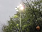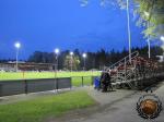 - Tijdelijke tribunes aan twee zijden van het veld.