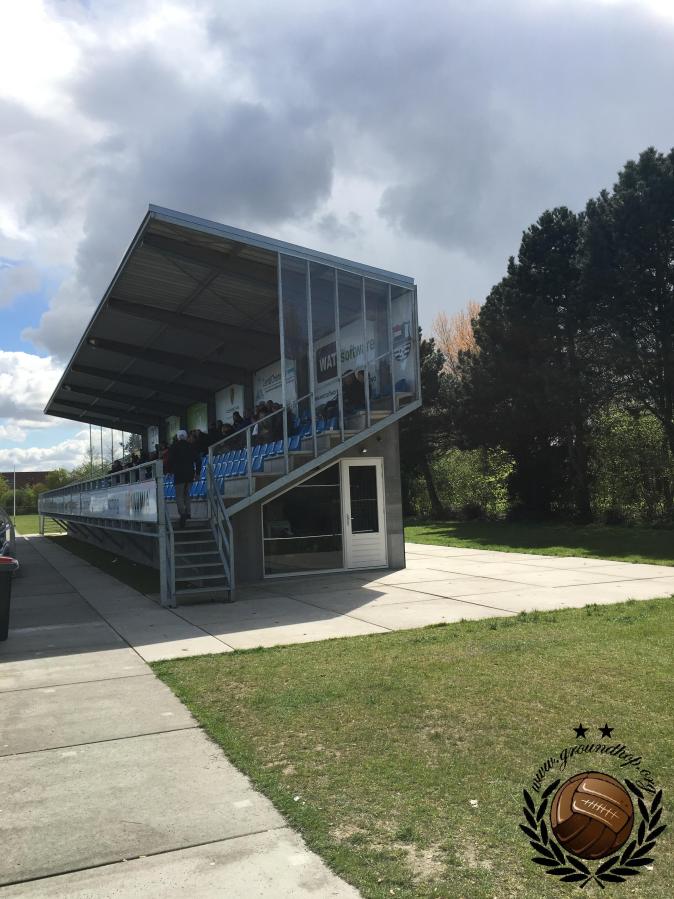 Deze tribune is de nieuwe blikvanger van het sportpark.