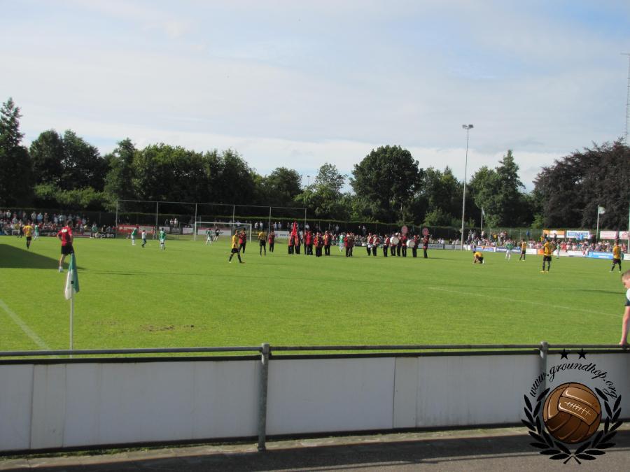 Na rust staan de spelers al enkele minuten op het veld, maar de fanfare heeft nog een hele rits achterlijke danspasjes ingestuurd en ze vertikken het om te vertrekken.