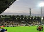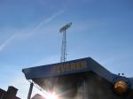 Zo gezegd, zo gedaan. Wij pikken onze kaarten op en gaan naar binnen. Hier bleek dat Beveren beter wat soepeler met de kaartverkoop had mogen zijn, het was verre van uitverkocht. Eigenlijk is alleen de korte zijde vol, en hiervan is dan nog een kwart het uitvak ook. Wel zo makkelijk omdat wij ons zo kunnen posteren dat wij zowel de wedstrijd als beide harde kernen in 1 blikveld kunnen vangen.