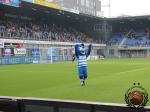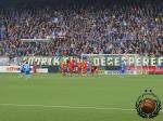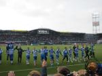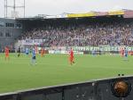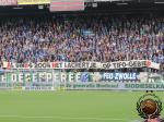 De wedstrijd begint op de tribunes in ieder geval niet zoals we gehoopt hadden. Zwolle heeft dan wel een mooi doek maar het gehoopte vuurwerk blijft uit. Van de Eagles komt ook meer dan een geel en een rood rookpotje. Sowieso was het uitvak van de Eagles de grote teleurstelling van de dag. De thuiswedstrijden zien er altijd erg sfeervol uit en we hadden dan ook echt hoge verwachtingen van de support uit het uitvak. Maar ondanks dat we niet ver van het uitvak vandaan zitten horen we er, op een enkele “Come on Eagles”, nagenoeg geen enkel geluid van afkomen.