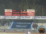 Maar goed, de wedstrijd is begonnen en eigenlijk kabbelt het maar wat aan vanaf de eerste minuut. Zo hier en daar een kansje en dat is het dan wel. Net op het moment dat wij de spelers verzoeken om ons te gaan vermaken wordt er meteen gescoord. Van de Vel krijgt de bal met wat geluk voor de voeten maar hij schiet onberispelijk binnen. Vlak voor rust schiet Schrijvenaars binnen en zo vallen er voor rust toch nog twee doelpunten. In de rust verplaatsen wij ons naar de hoofdtribune en vanaf hier ziet alles er een stuk leuker uit.