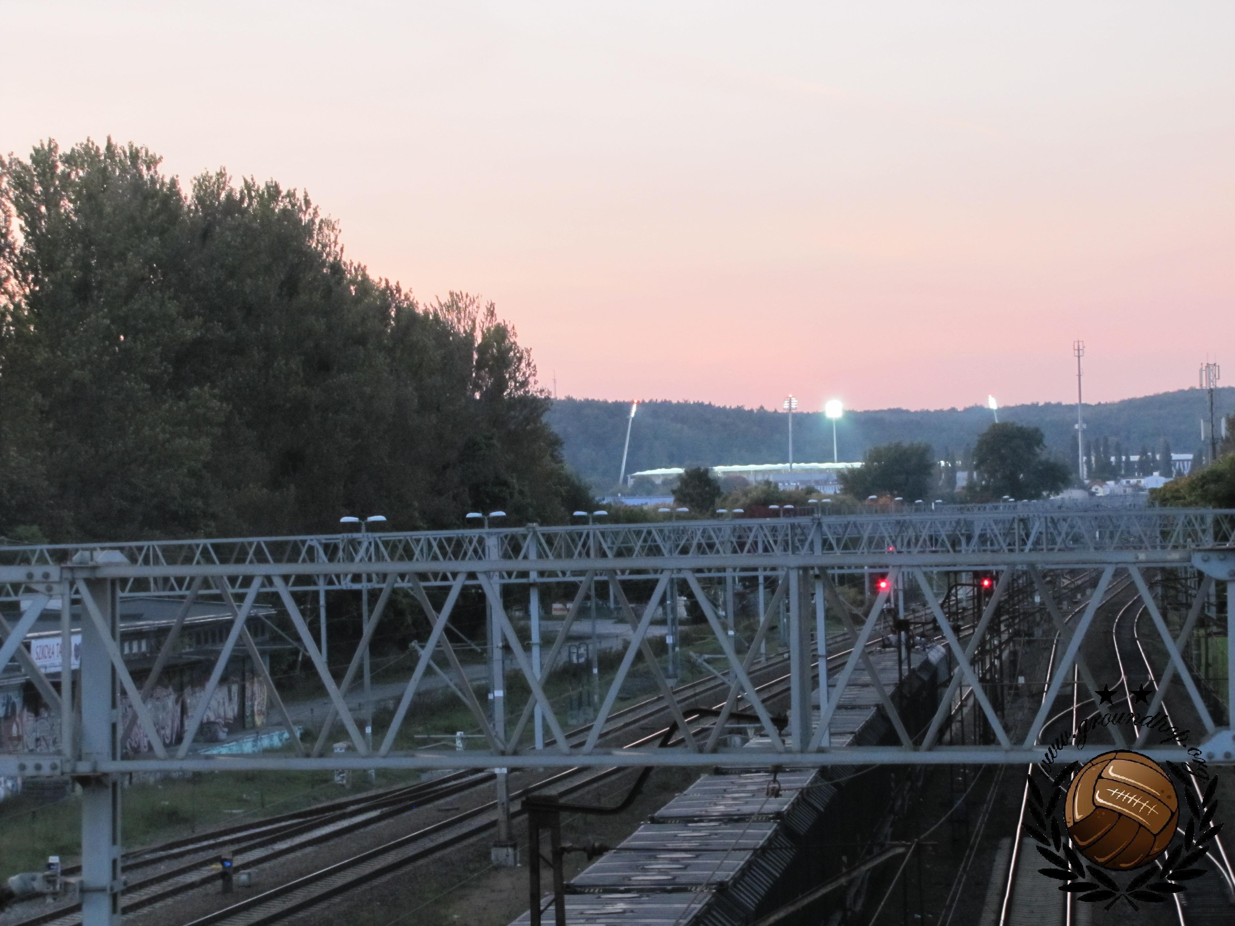 Vanaf het station zagen we het Stadion Miejski w Gdyni al liggen.