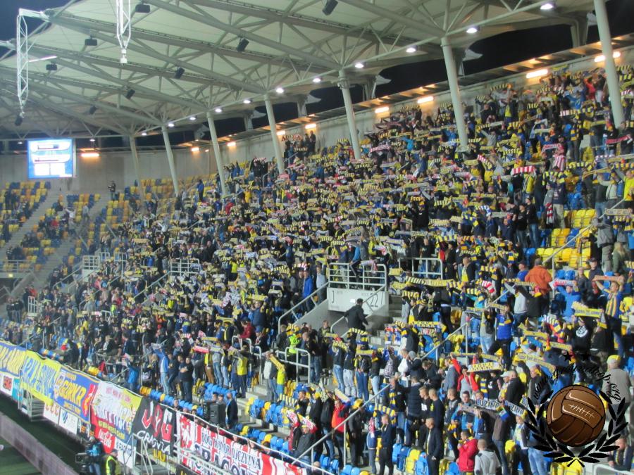 Sjaals massaal in de lucht voor het clublied van Cracovia.