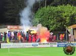 Bij de aftrap worden wij aangenaam verrast door Deinze dat met een leuke pyro actie komt aanzetten. Oudenaarde beperkt zich tot vlaggen, al vinden we dit eigenlijk ook nog wel acceptabel. Op het veld is er maar één ploeg die aanspraak maakt op de overwinning. Deinze is echt op alle fronten de bovenliggende partij. Het duurt dan ook niet lang voordat ze op voorsprong komen. De Greef werkt de bal na enig gefrommel overtuigend in de hoek. Nog geen vijf minuten later steelt de keeper van Oudenaarde de show door een vrije trap amateuristisch door zijn handen te laten glippen en zo komt Deinze op 2-0.