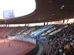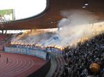 Een uurtje voor de wedstrijd is het tijd om onze plekken te gaan zoeken. In een, op de Südkurve na, nog verlaten stadion ploffen we neer in afwachting van wat nog komen gaat. En hierin worden we niet teleurgesteld. De Zürcher Südkurve pakt uit met een prima tifo actie waarin het logo en het jaartal van FC Zürich zichtbaar wordt, omlijst met een fraaie pyro actie.