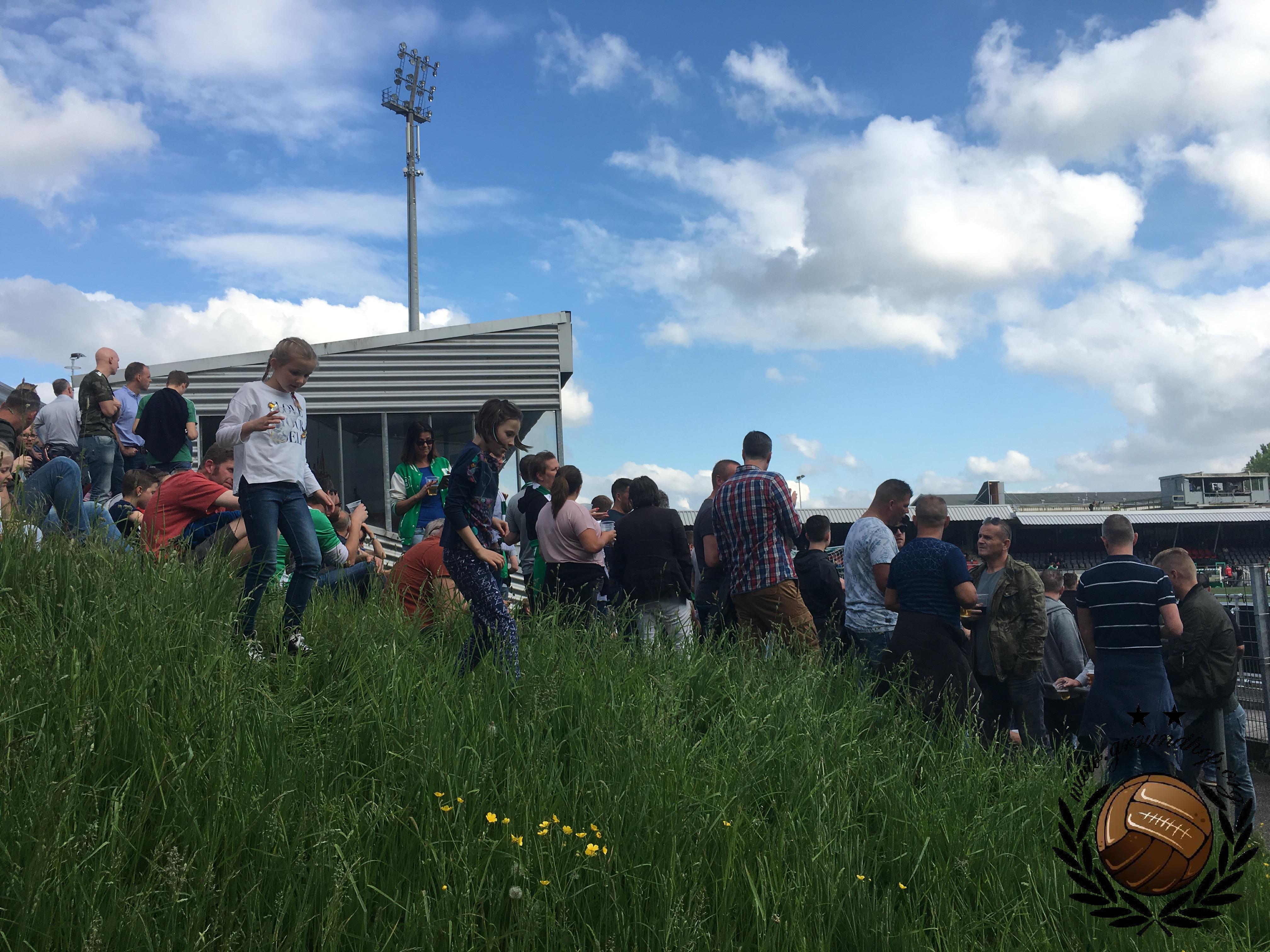Play-offvoetbal in het zonnetje, in het gras. Veel beter wordt het niet.