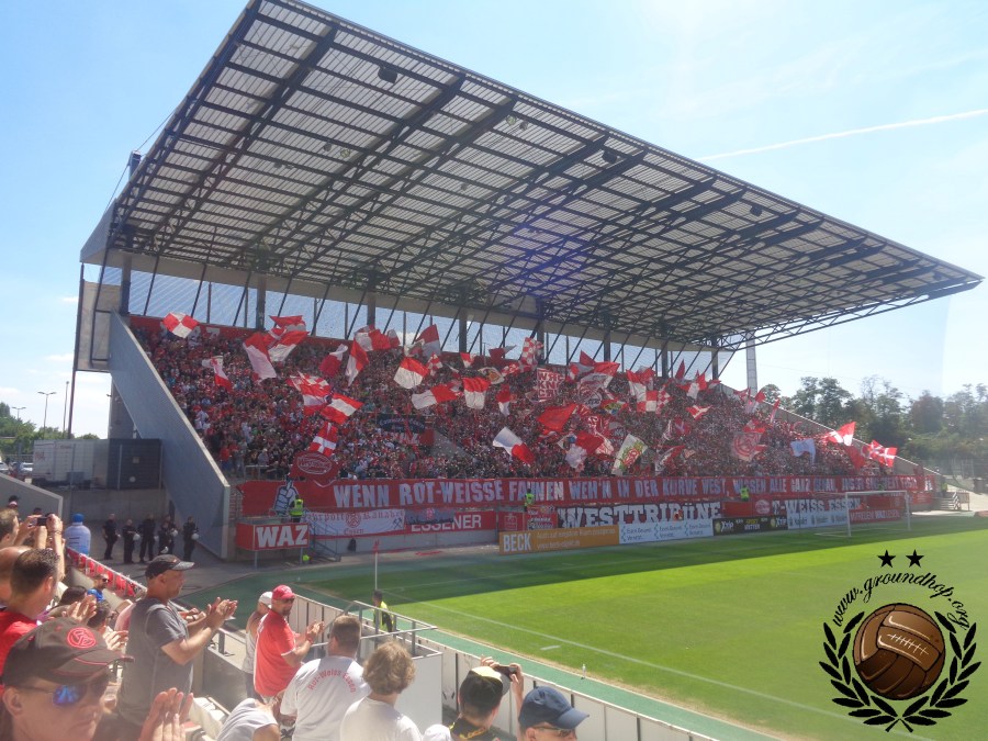 De fanatiek aanhang van Rot-Weiss heeft plaatsgenomen in de West “kurve”.