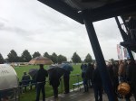 Deze zaterdag zal voor ons vooral de boeken in gaan als nat. Vanuit Rotterdam richting Opheusden zien wij de zon geen enkele keer tevoorschijn komen en eenmaal op het sportpark is het een kwestie van een geschikt moment uitzoeken om niet helemaal zeiknat over te komen. Aangezien het overdekte terras al vol staat zoeken wij een plekje in de biercorner. Zonder al te goed zicht overigens, mede dankzij de niet oplettende DFS supporters die pontificaal plaatsnemen voor deze stand. Dat is niet nog zo’n ramp, maar wanneer ze hun mega-paraplu’s tevoorschijn toveren en uitklappen blijft er niet veel van het uitzicht over.