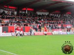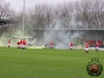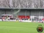 Hereford staat slechts een paar posities hoger op de ranglijst maar is op het veld vele malen beter. Echter komt de thuisploeg op voorsprong, Chris Sharp is het meest alert om de bal uit de kluts binnen te tikken. Lang genieten van de voorsprong kunnen ze niet, aangezien het 6 minuten later achterin bij FCUM mis gaat en Michaels Symons profiteert van dit buitenkansje. We schrikken ons rot bij dit doelpunt aangezien Hereford flink wat vuurwerk afsteekt, iets wat in Engeland eigenlijk not done is. Het vuurwerk eindigt ook op het veld, maar gelukkig zijn ze hier geen mietjes. Het wordt van het veld afgehaald en meteen voetballen we verder. Uiteraard zijn de spreekkoren ondertussen wel gericht richting het uitvak. Gewoon lekker spreekkoren over en weer zonder dat een stadionspeaker aanmaant om hier mee te stoppen is een belevenis die tegenwoordig ook niet vaak meer voorkomt op de velden.