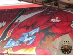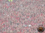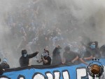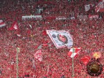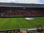 De sfeeractie is toffer dan gedacht. Het megadoek dat de complete korte zijde bedekt is prachtig en de vlaggen door het hele stadion maken het af. Zoals verwacht is het tweede doek alleen om verdekt vuurwerk af te steken en de rood en witte rookpotten vullen het halve stadion. Na een minuut of tien is de sfeeractie ten einde en is de wedstrijd met vertraging begonnen.