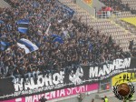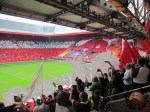Na een flink doolhof lukt het ons om de aangewezen plaatsen te vinden en bestuderen wij met ons beste Duits de instructies voor de choreo die de harde kern heeft opgezet.