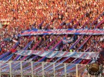 Zodra de zon onder is gaan we de tribune op. Net voordat de wedstrijd aanvangt komt ook de harde kern aanzetten en de sfeer zit er meteen goed in.