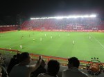 Onze chauffeur gedraagt zich al tijden zeer on-Argentijns en zo zijn wij ook hier een eeuwigheid van tevoren aanwezig. Met meer dan een uur tot de aftrap betreden wij het stadion en gaan op de enige overdekte plekken zitten, want er hangt regen en onweer in de lucht. Achteraf blijkt dat het vandaag gelukkig droog zal blijven.