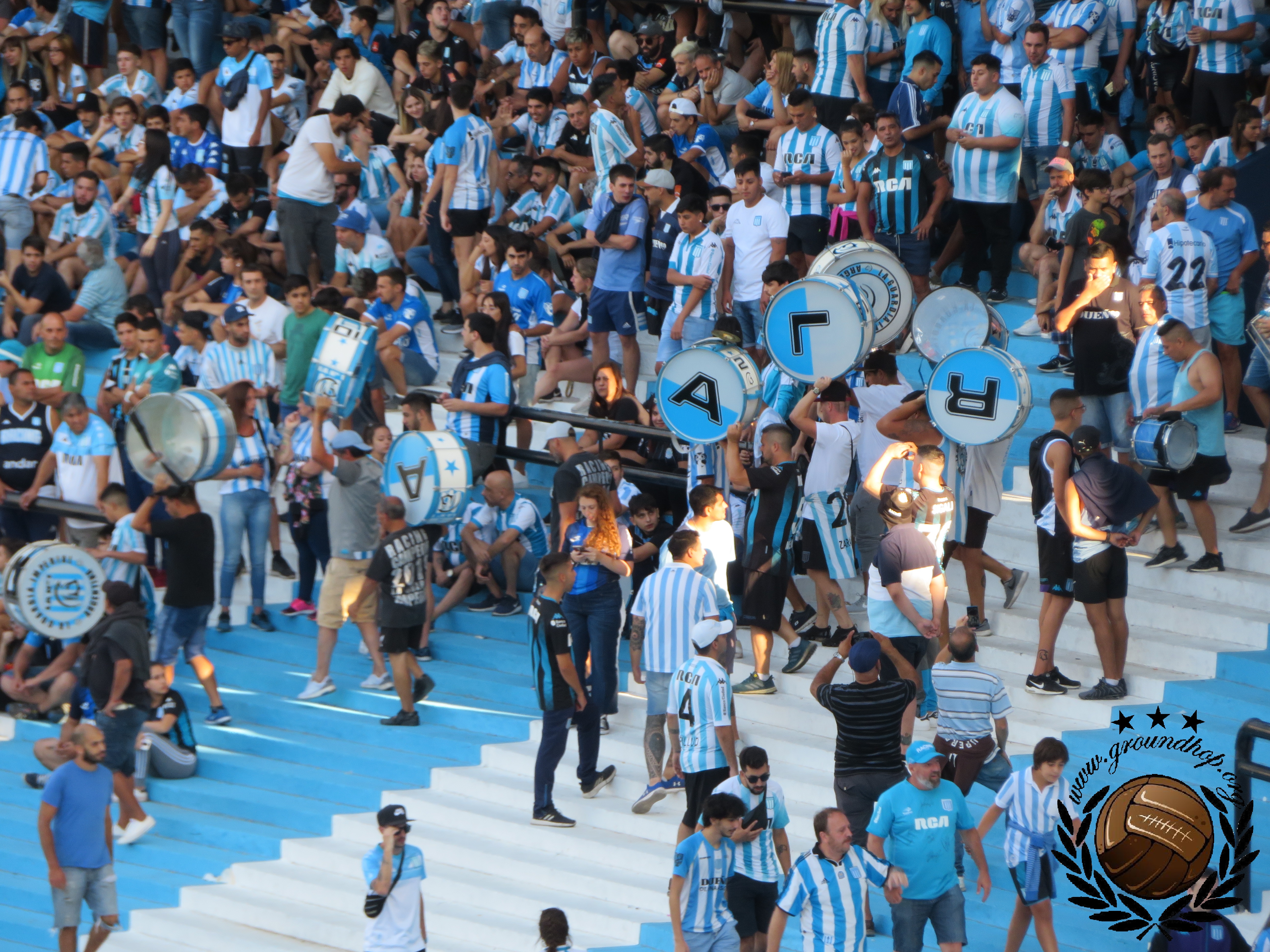 Paar trommeltjes worden het stadion binnen gedragen.