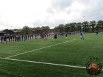 Dat de districtsbeker niet erg serieus wordt genomen door de diverse verenigingen wisten we al, maar het bereikte vandaag een nieuw dieptepunt toen bleek dat de wedstrijd verplaatst was naar een bijveld omdat er een meisjesploeg op het hoofdveld aan het spelen was. We overwegen even om dan maar naar huis te gaan, maar het mooie weer doet ons toch besluiten om te blijven.