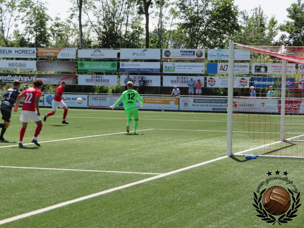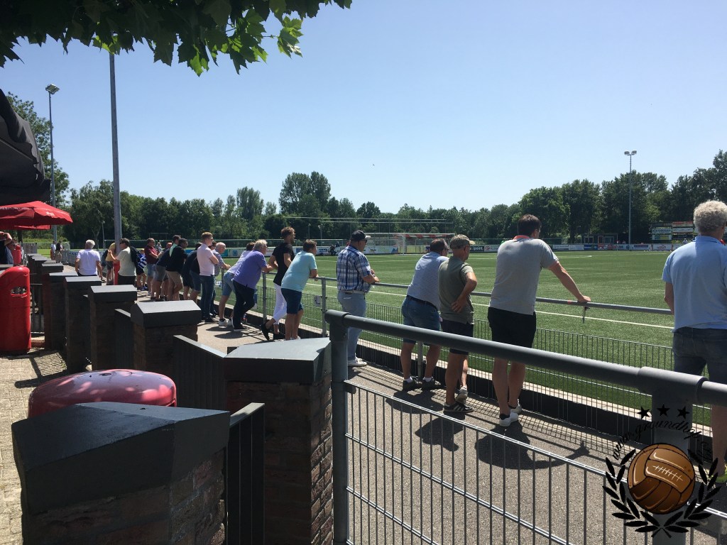 Het duurde dan ook vrij lang voor de wedstrijd eindelijk een beetje op gang kwam. De eerste tien minuten gaan er al diverse spelers naar de grond die verzorging nodig hebben. Eerst een Spakenburger en daarna Rick Wils van Sportlust die een bal in zijn gezicht krijgt en de strijd direct moet staken.