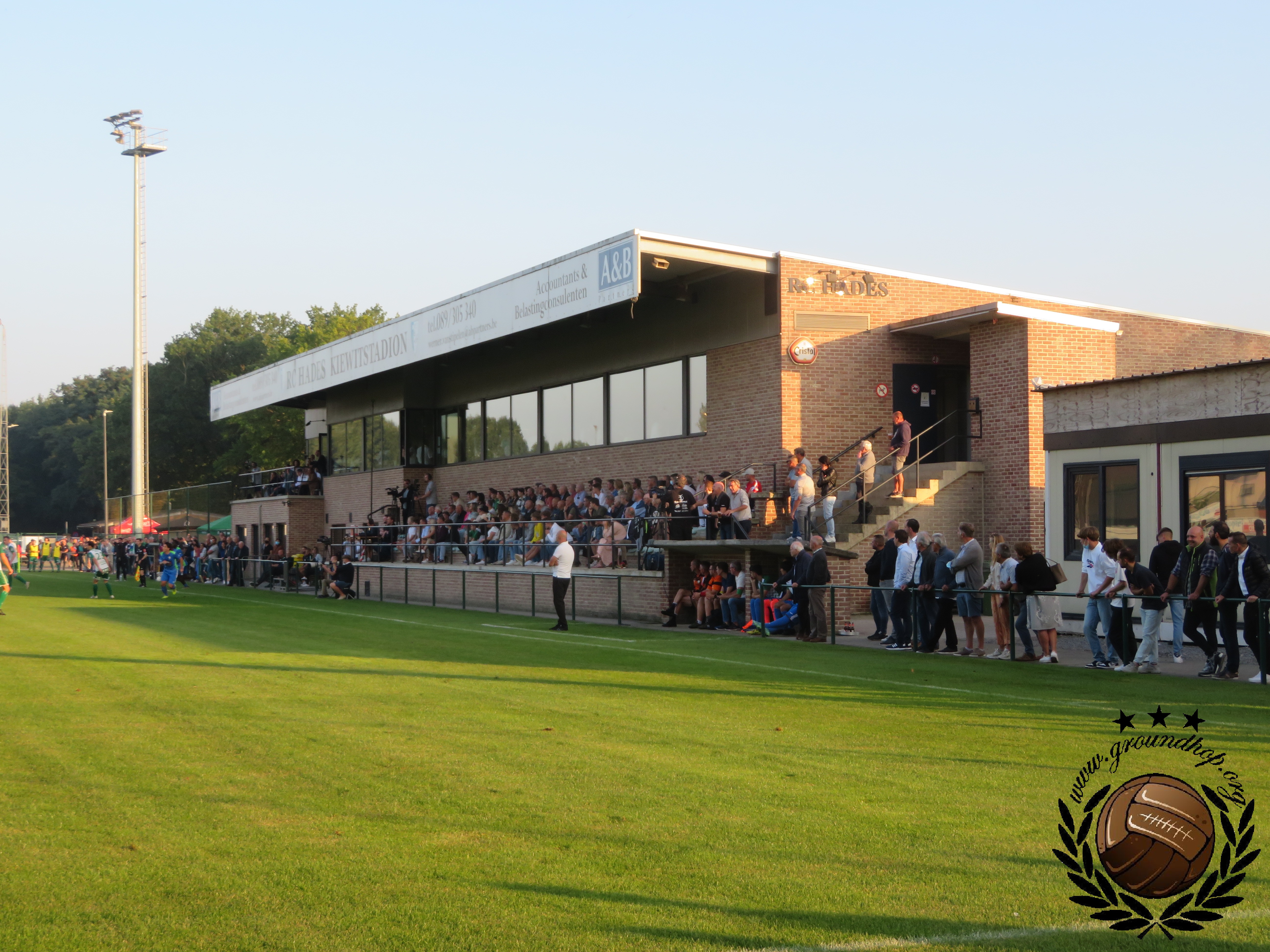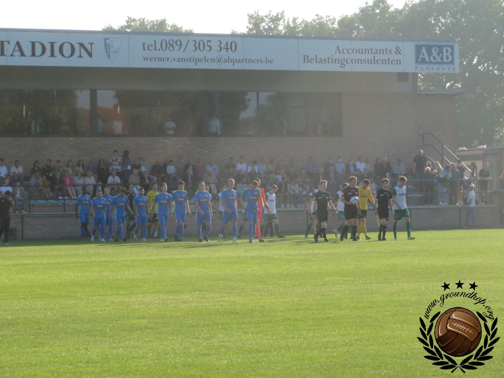 Na ons bezoek aan Bonner SC hebben we de smaak te pakken en rijden we direct door naar Hasselt. Om precies te zijn naar Kiewit waar RC Hades het seizoen opent met de derby tegen Sporting Hasselt. Op een klein bordje dat we een mondkapje moeten dragen na lijkt Covid-19 hier niet te bestaan en dit stemt ons zodanig vrolijk dat we maar een Crystal bier bestellen. Normaal laten we dit afschuwelijke bocht links staan maar met het lekkere avondzonnetje en voor het eerst sinds tijden een bezoek aan een wedstrijd in België is niets ons te gek.