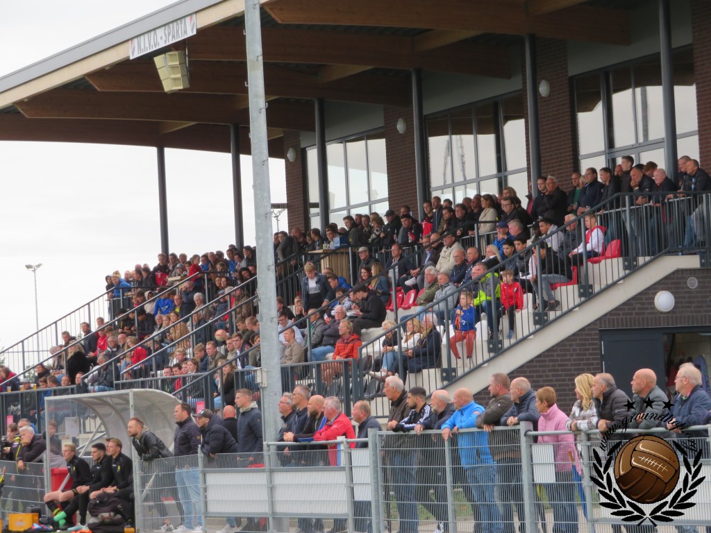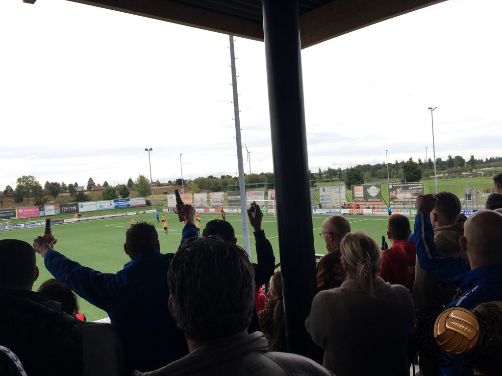 Het is koud op het winderige Sportpark de Watertoren, waardoor vrijwel alle supporters zich verzameld hebben op de tribune en het bovengelegen terras. Vanaf daar zien we zowaar nog wat pyro bij de opkomst van deze derby. Ondanks dat de opkomst niet heel hoog is, lijkt deze wedstrijd wel echt te leven bij de clubs.