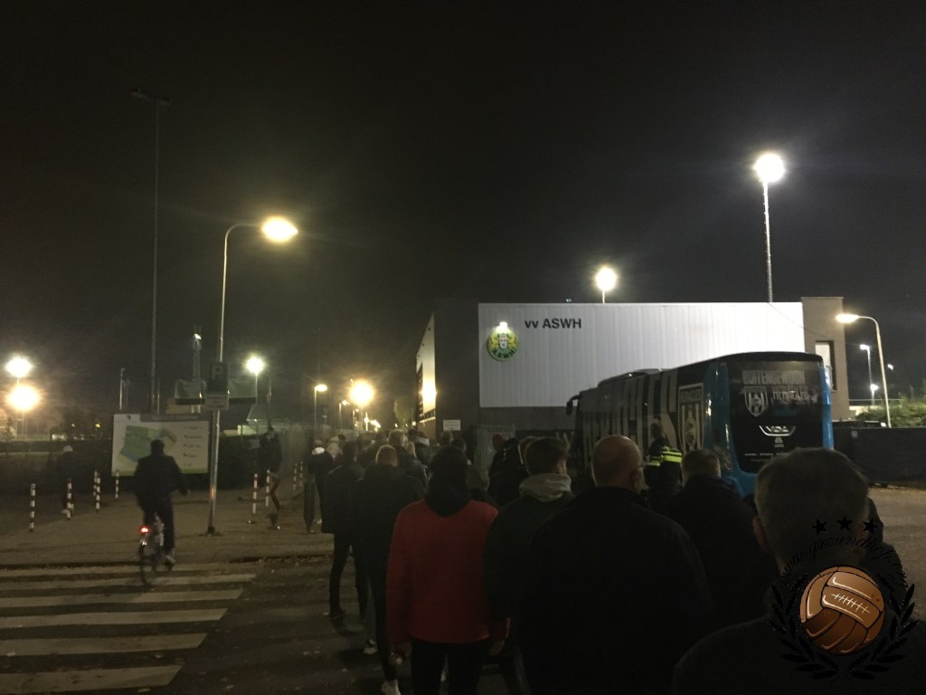 De tweede ronde van de nationale beker staat op het programma en dit is voor ons meestal een teken om een paar midweekse wedstrijden te pakken. Ditmaal besluiten we er twee te bezoeken in deze ronde en we beginnen op het Sportpark Schildman van ASWH. We kopen onze kaarten online want anders mogen we niet naar binnen en schuiven een kwartier voor aftrap aan in de rij, welke langer is dan dat we ooit hebben gezien bij een amateurclub. De QR-Codes moeten gecheckt worden en dit heeft zodanig veel voeten in de aarde dat we ons er al bij neer hadden gelegd dat we veel te laat binnen zouden zijn. Uiteindelijk opent er een extra poort en nemen wij precies tijdens de aftrap onze plekken in, uiteraard op het terras waar bier wordt geschonken.
