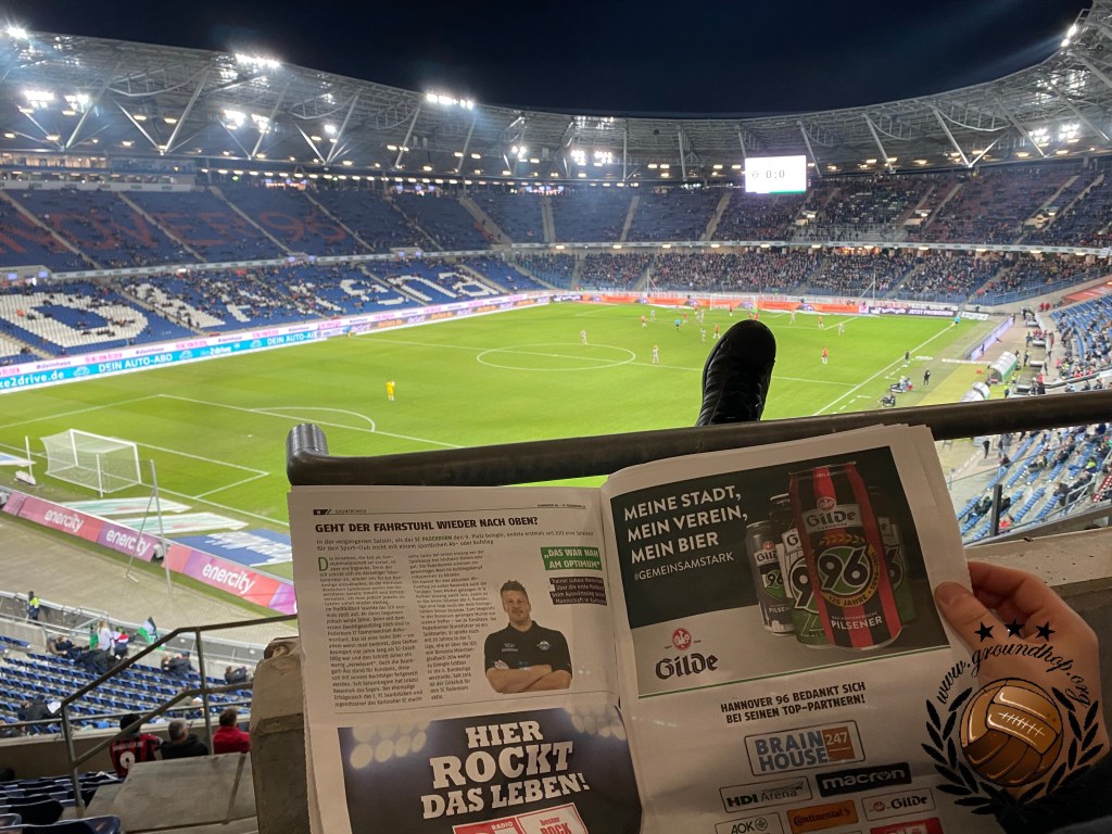 Aangezien we ruim op tijd zitten hebben wij ook meteen de mogelijkheid om eens een paar goede conclusies te trekken. Zo zien wij dat ook vandaag er geen ultras van Hannover aanwezig zullen zijn, iets dat sinds het uitbreken van de pandemie al niet meer gebeurd. Wel valt het ons op dat Paderborn, net zoals eerder bij Union Berlin, het uitvak wederom goed lijkt te vullen, ondanks het verschrikkelijke aanvangstijdstip van 18:30.