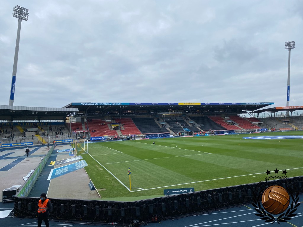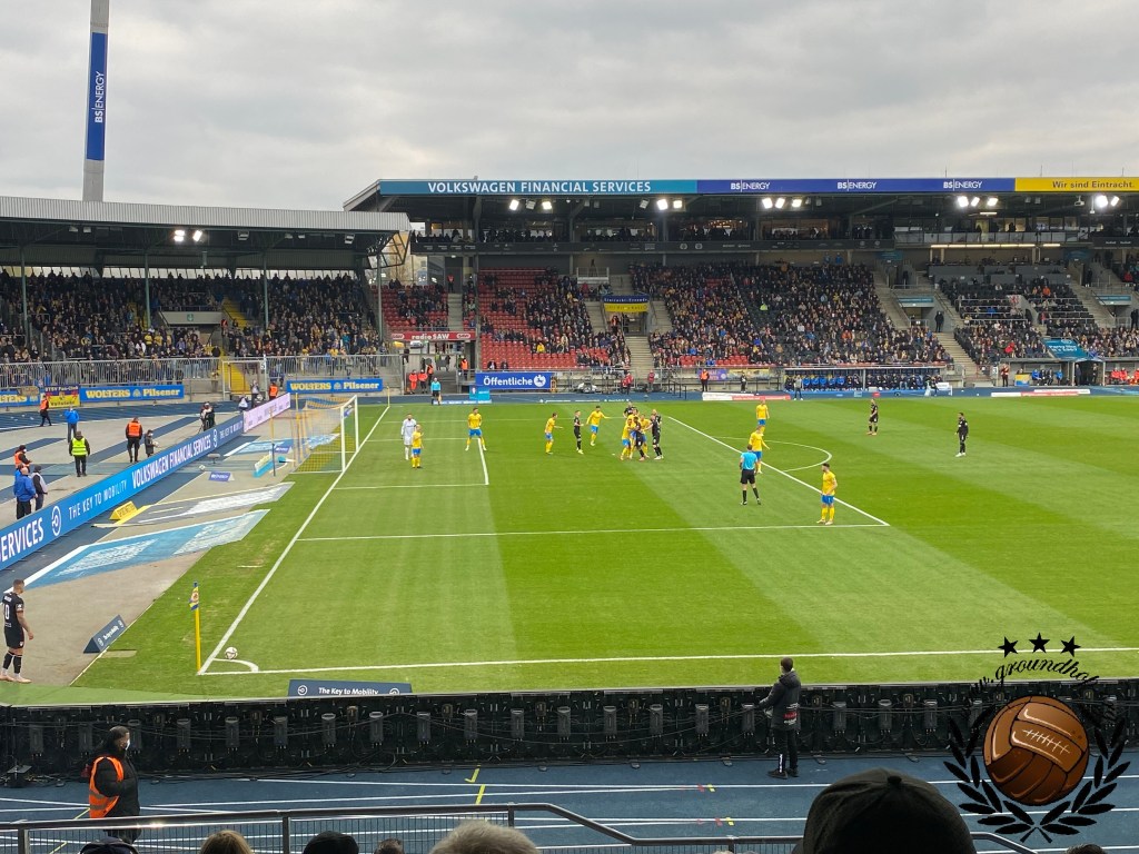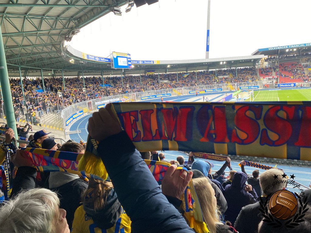 Een dag na ons bezoek aan Hannover is het voor ons tijd om te gaan buurten bij de aartsrivaal. In Braunschweig speelt Eintracht tegen Türkgücü München. Niet direct een wedstrijd waar we spanning en sensatie verwachten, maar het ligt voor ons toch op de route, dus kunnen we natuurlijk net zo goed eens neerploffen hier. Ook hadden wij gehoord dat de currywurst hier van een bijzonder hoog niveau is, dus het slechtste wat er kan gebeuren is dat we een goede lunch hebben met uitzicht op een voetbalwedstrijd.