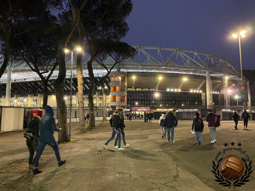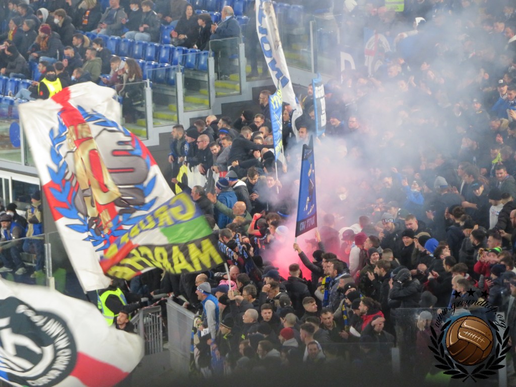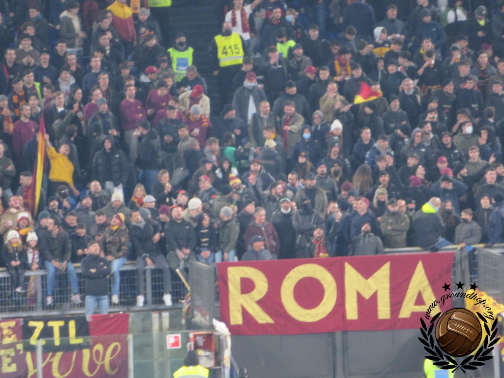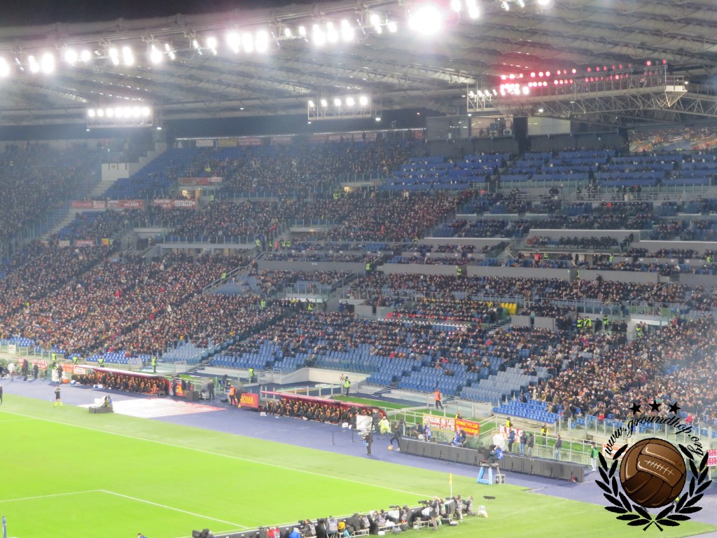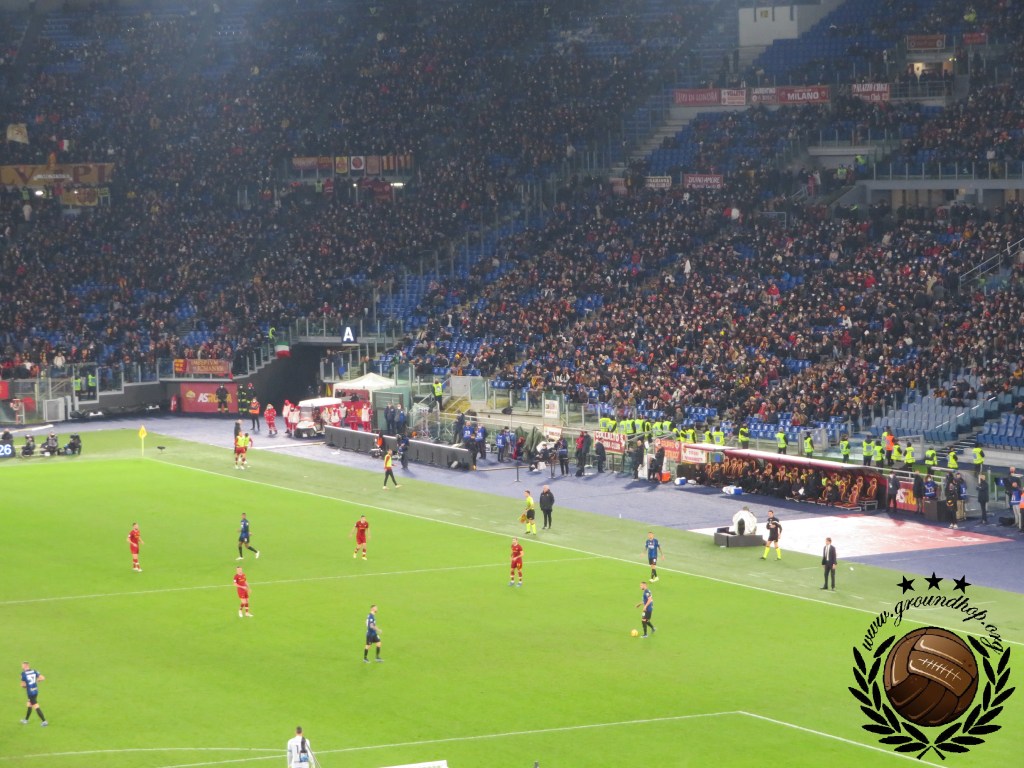 We zijn ruim op tijd bij het Stadio Olimpico en dat is maar goed ook. We zijn wel wat gewent qua controles vanuit Buenos Aires, maar de Italianen kunnen er ook wat van. Vijf controles moesten we door voordat we het stadion konden betreden: eenmaal de Coronacontrole, tweemaal een fouillering en tweemaal een check op toegangsbewijs + identificatie. Het kost wat moeite, maar dan heb je ook wat. Een topper in de Serie A in een goed gevuld Stadio Olimpico. Enkel in de vakken waarvan de kaarten rond de €100 lagen blijven stoeltjes leeg. Ook Inter is met een groot uitvak ook massaal aanwezig.