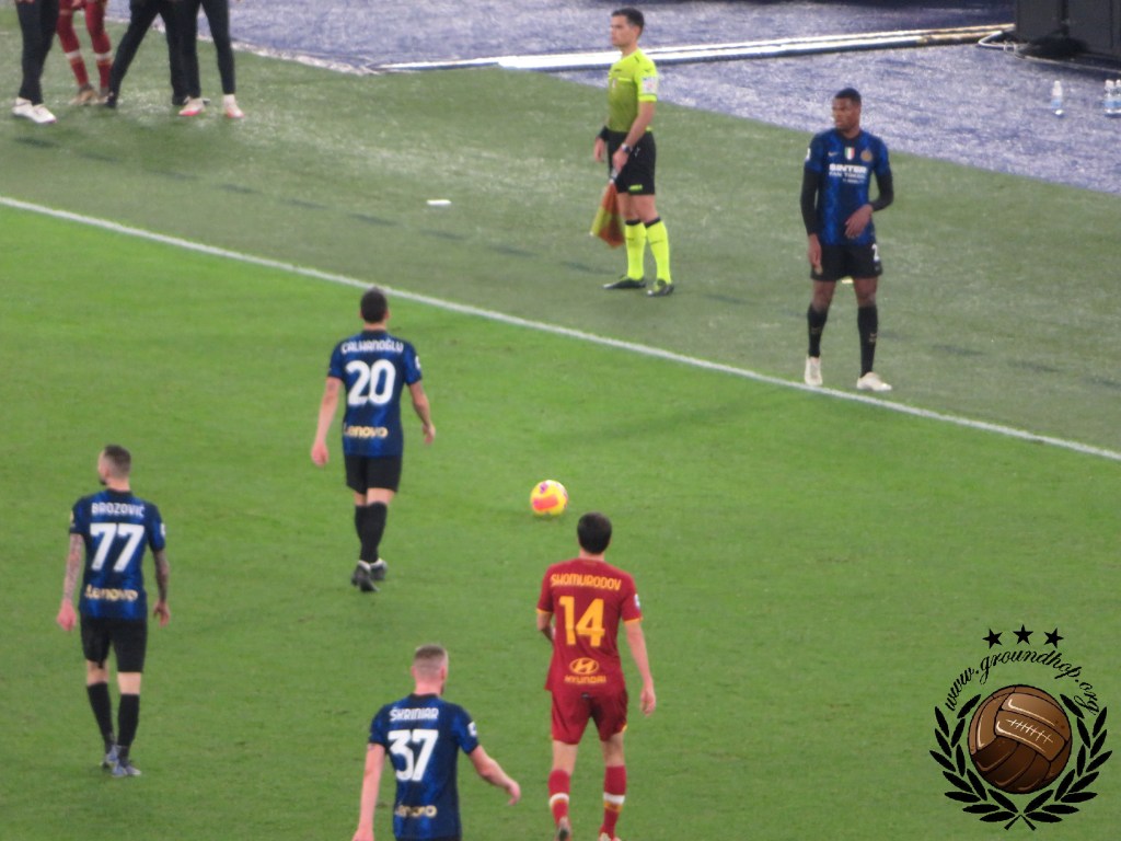 Daarna gaat het hard. Inter snijdt door de Romeinse defensie als een warm mes door boter en stapelt kans op kans. Tien minuten na de 0-1 is het ex-Roma speler Edin Džeko die op aangeven van Çalhanoglu de 0-2 binnenschiet. Nog voor rust valt ook de 0-3. Denzel Dumfries kopt een voorzet van Bastoni binnen.