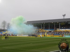 Na drie tussenstops is het dan eindelijk tijd voor de hoofdmaaltijd van het weekend. De wedstrijd tussen Lokomotive en Chemie Leipzig. Van oudsher botert het totaal niet tussen beide clubs en ook politiek gezien kunnen ze totaal niet door 1 deur. In Nederland is politiek totaal niet met voetbal verweven, maar in het voormalig Oostblok is dit zeker een dingetje. Als rechts tegen links speelt is het gegarandeerd gezeik. Tel hierbij op dat de staatsclub die Lokomotive was in het verleden een handje heeft gehad van het jatten van spelers bij Chemie, en zo krijg je een overduidelijk beladen wedstrijd. Tussen alle skinheads, die ook nog eens een hekel hebben aan groundhoppers, lopen we richting van Bruno Plache-Stadion. Deze bak is waarschijnlijk sinds onze reis naar Argentinië het mooiste stadion dat we gezien hebben. Nog voor de aftrap worden en complete vuurpijlen richting het uitvak geknald en zo lijkt deze derby onze verwachtingen wel eens waar te kunnen maken. We krijgen een soort pamflet in onze handen geduwd waaruit blijkt dat Lokomotive solidair wilt zijn met de niet-gevaccineerden. Ons bekruipt het vermoeden dat dit meer uit angst is geboren aangezien Chemie waarschijnlijk vocaal toch meer aanwezig is dan de thuisploeg. Nu is dat in ieder geval zeker het geval en spreken wij ook hardop van een pijnlijke vernedering. Gelukkig voor Lok hebben ze vandaag nog in iets de overhand, want de wedstrijd zal met 1-0 gewonnen worden.