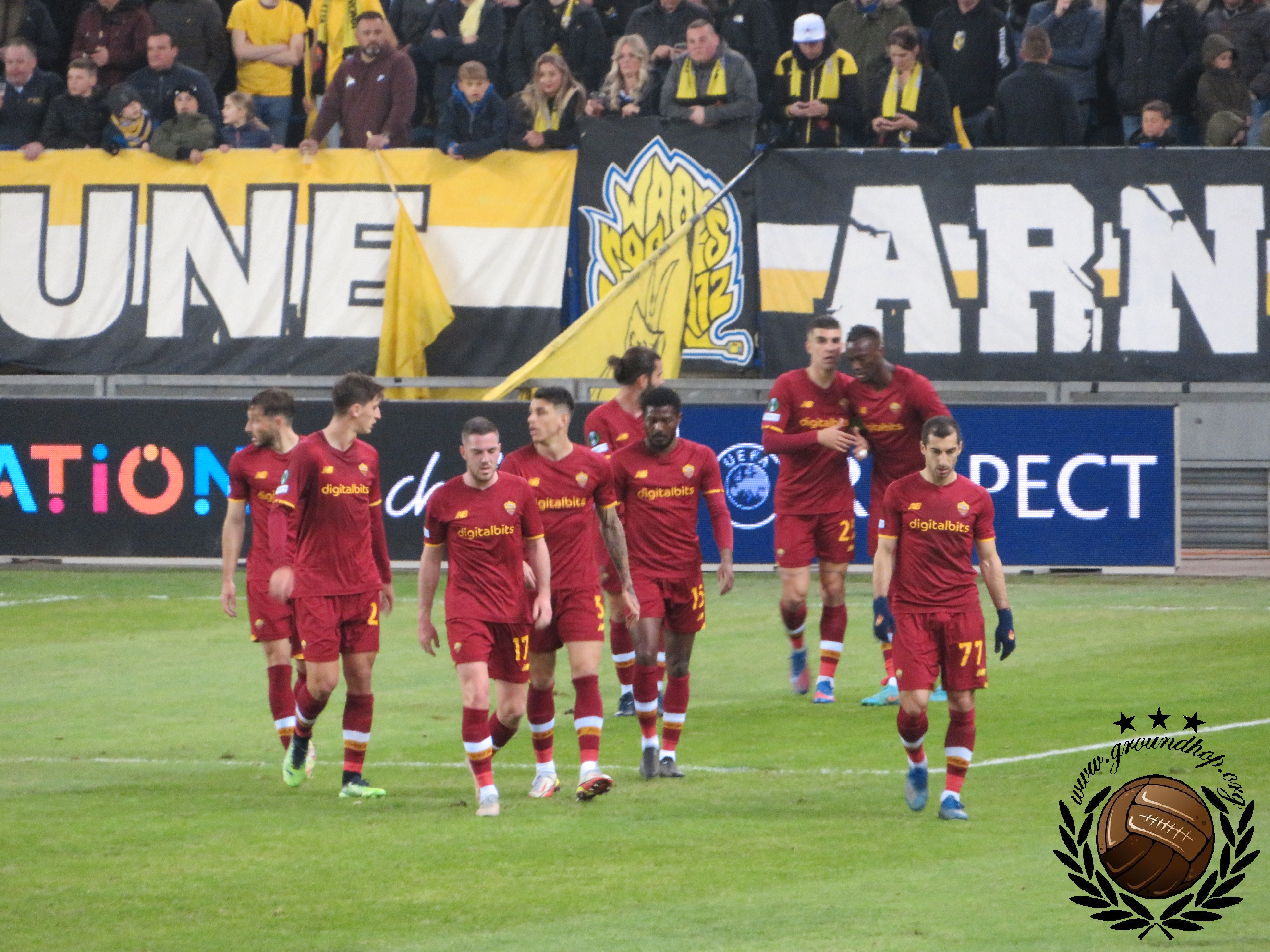 Niets lijkt op het veld echter minder waar. Na een opkomst met een vrij matig uitgevoerde tifo, pakt Vitesse de wedstrijd stevig in handen. Het is op alle vlakken beter dan de Romeinen en weten enkele grote kansen af te dwingen. Ze weten te scoren, maar deze wordt afgekeurd voor buitenspel. Openda maakt het echter helemaal bont. Hij slaagt erin om voor een leeg doel, vanaf een metertje of twee, torenhoog over te schieten.