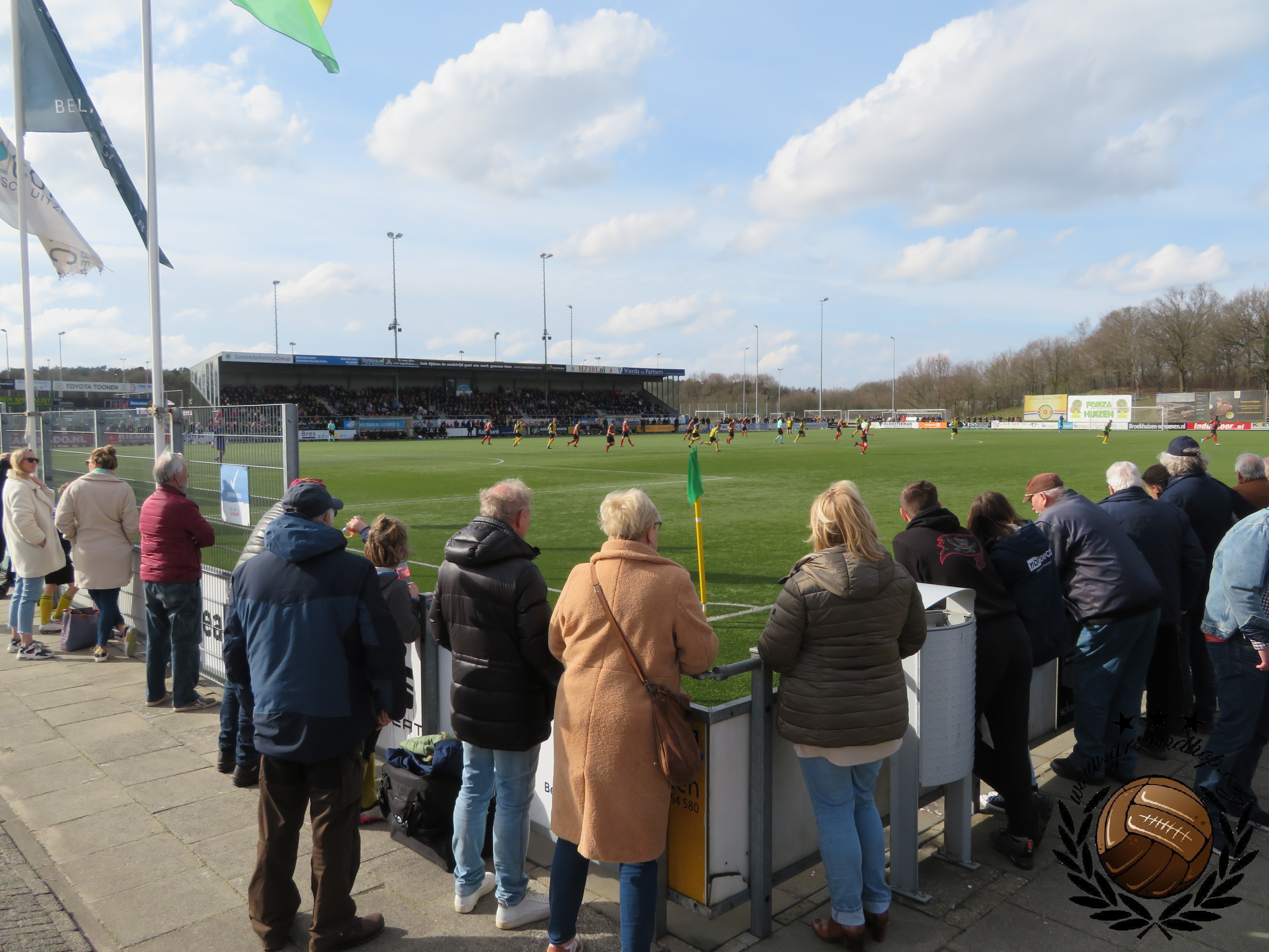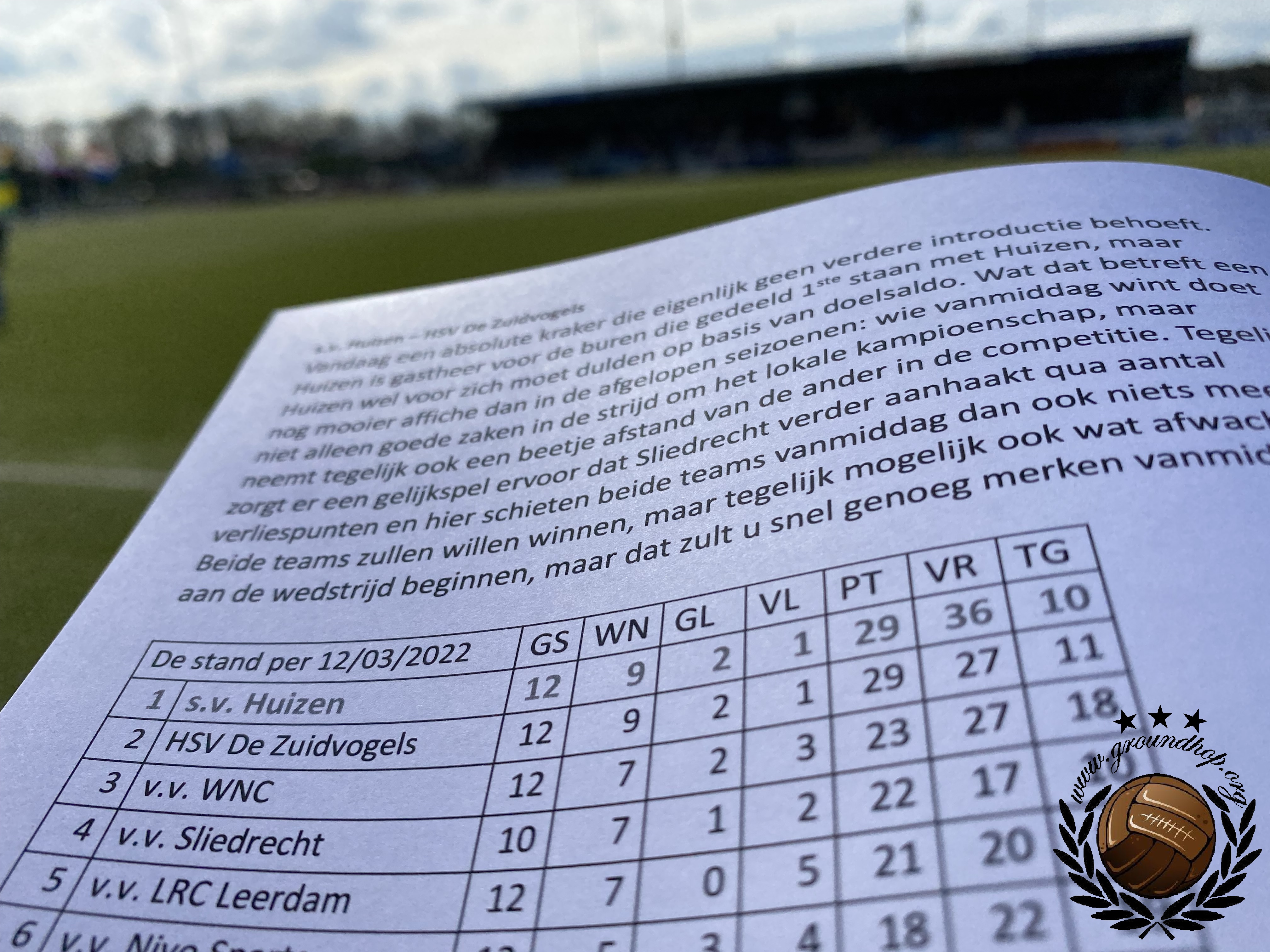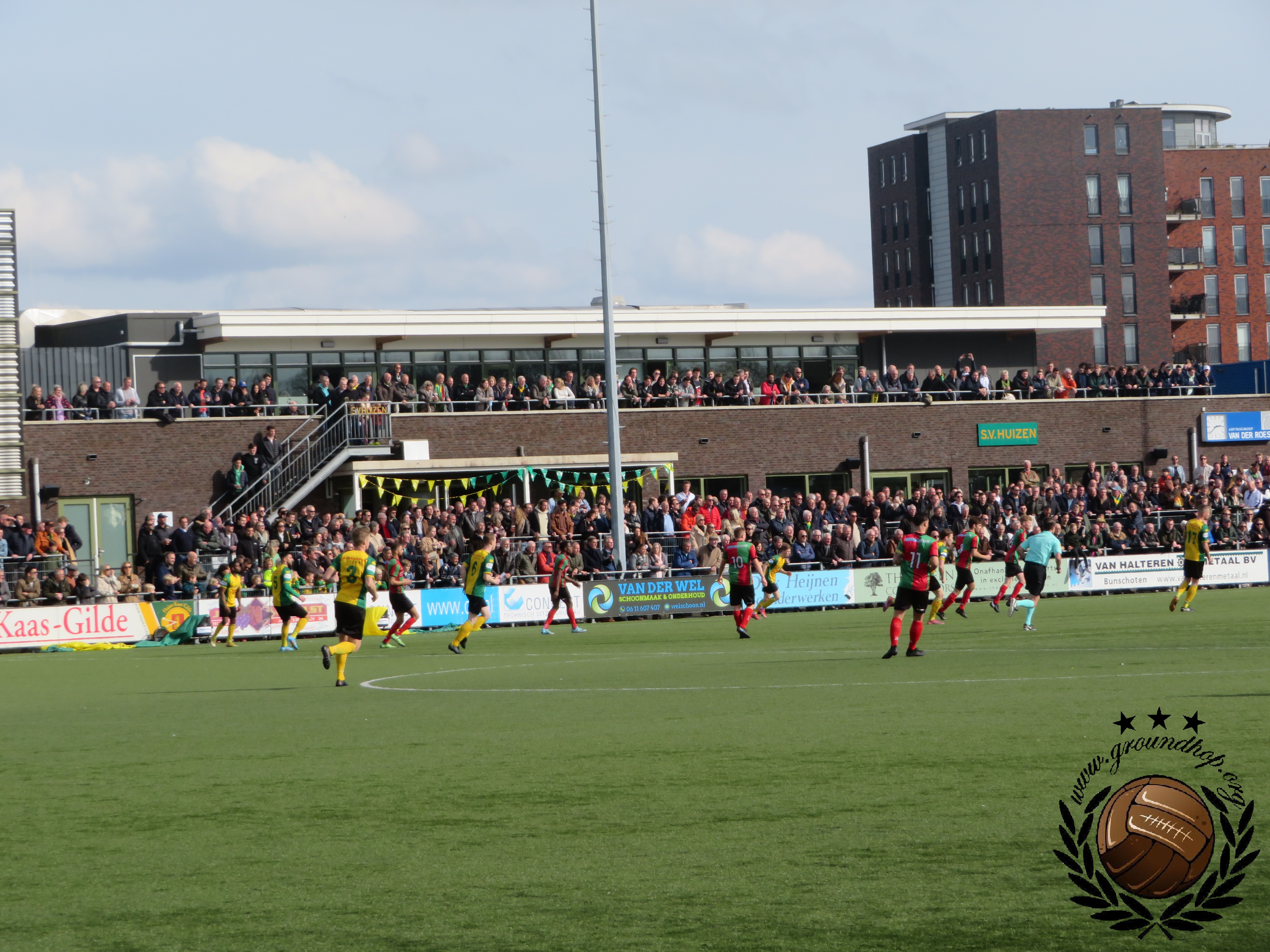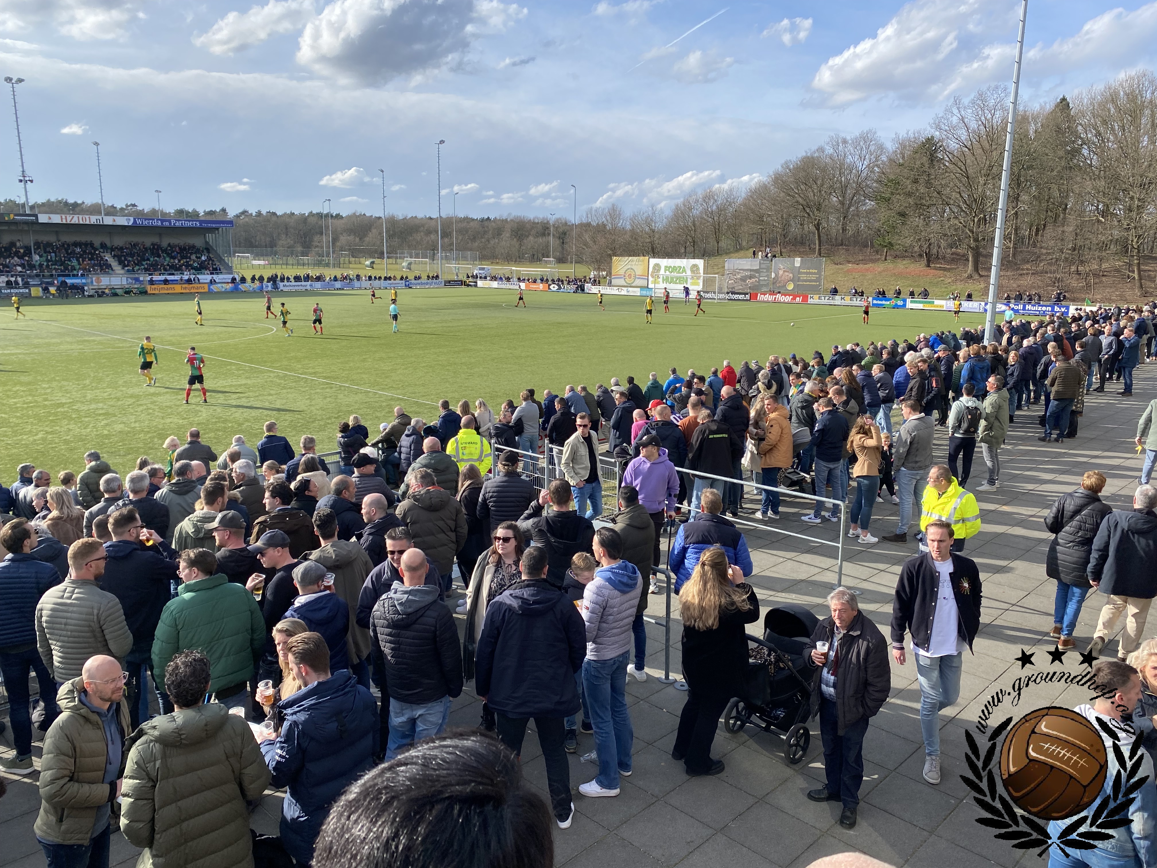 Dat de derby van Huizen een beladen potje is, merkten we enige tijd geleden al toen we dit duel aan de groen-rode zijde bezochten. Toen nog in de Hoofdklasse, leverde een weinig enerverend duel geen doelpunten op. We zijn inmiddels 3,5 jaar verder en beide ploegen zijn inmiddels actief in de Eerste Klasse. Beide ploegen doen dat dit seizoen ook zeer verdienstelijk. Zo verdienstelijk zelfs dat beide ploegen met exact evenveel punten de koppositie delen. Slechts op doelsaldo mag SV Huizen zich de betere ten opzichte van Zuidvogels noemen. In een rechtstreeks duel om de koppositie vandaag staat er dus veel meer op het spel dan alleen de dorpseer. De belangen zullen zelden groter geweest zijn bij de Huizense derby.