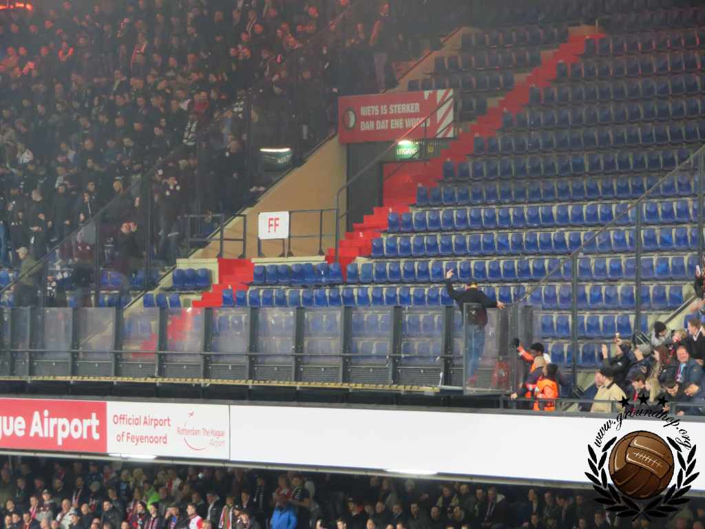 In de tweede helft is het spelbeeld eigenlijk hetzelfde. Niet dat Feyenoord nou zo goed speelt, maar de gasten uit Servië spelen vooral abominabel slecht. Gelukkig maakt dat voor de supporters uit Belgrado niet uit, al vinden zelfs wij het in deze tijd ver gaan dat ze hun voorkeur voor Rusland durven te scanderen. Heel even lijkt er nog wat reuring te komen wanneer alle spandoeken van het uitvak snel worden weggehaald, maar helaas blijft het verder vrij tam. Op het veld daarentegen vallen er nog drie goals en is het best een aantrekkelijke wedstrijd die eindigt in een 3-1 overwinning voor de Rotterdammers. Op naar de volgende ronde!