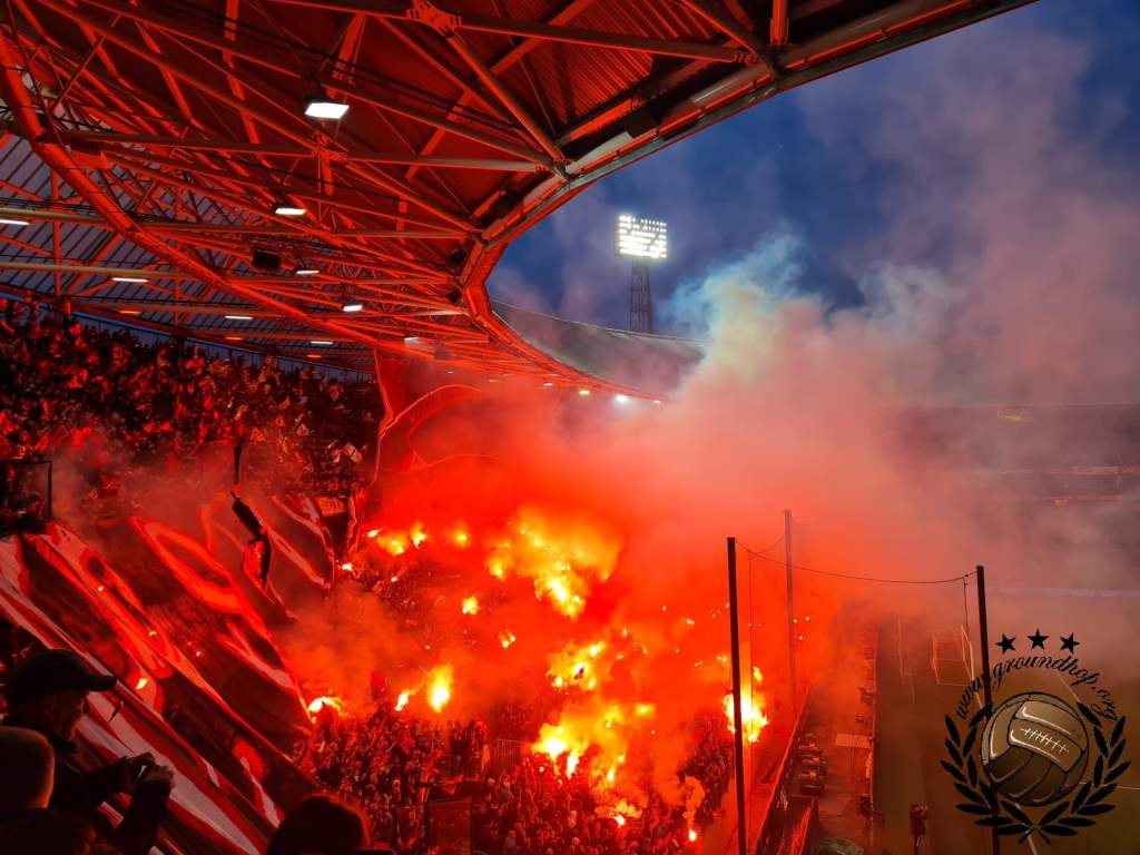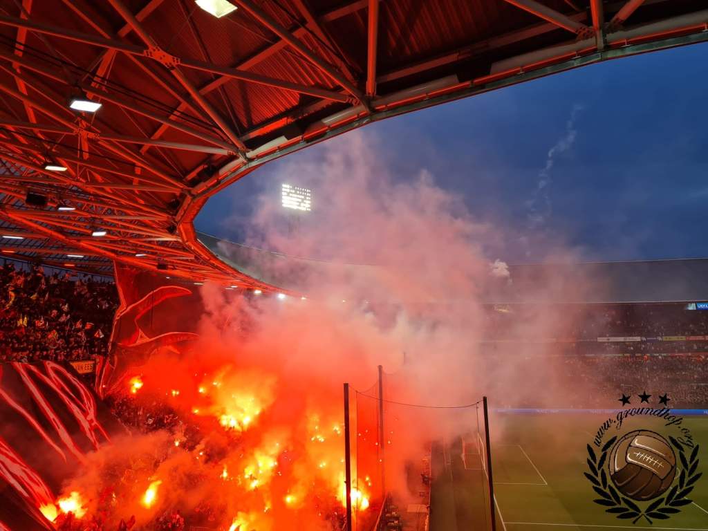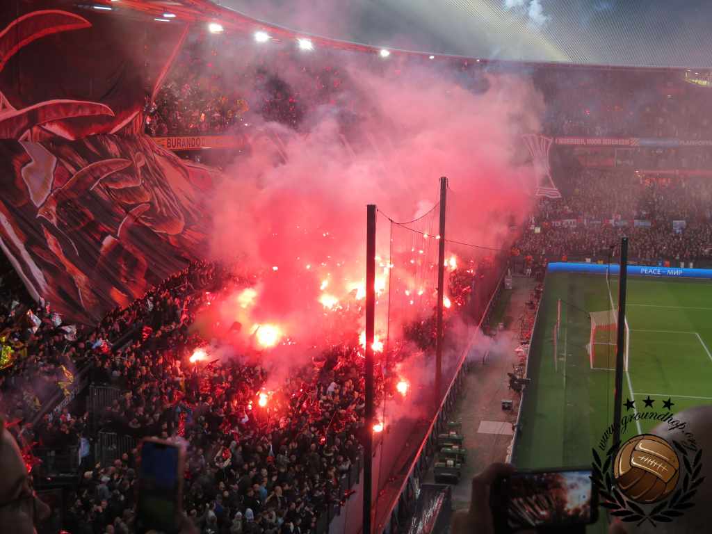 Eenmaal binnen blijkt de Kuip al ruim van te voren helemaal afgeladen te zijn. De wedstrijd was dan ook binnen enkele tientallen minuten volledig uitverkocht. De toch al zeer gespannen sfeer wordt met ouderwets Rotterdamse teringherrie tot een kookpunt gebracht.