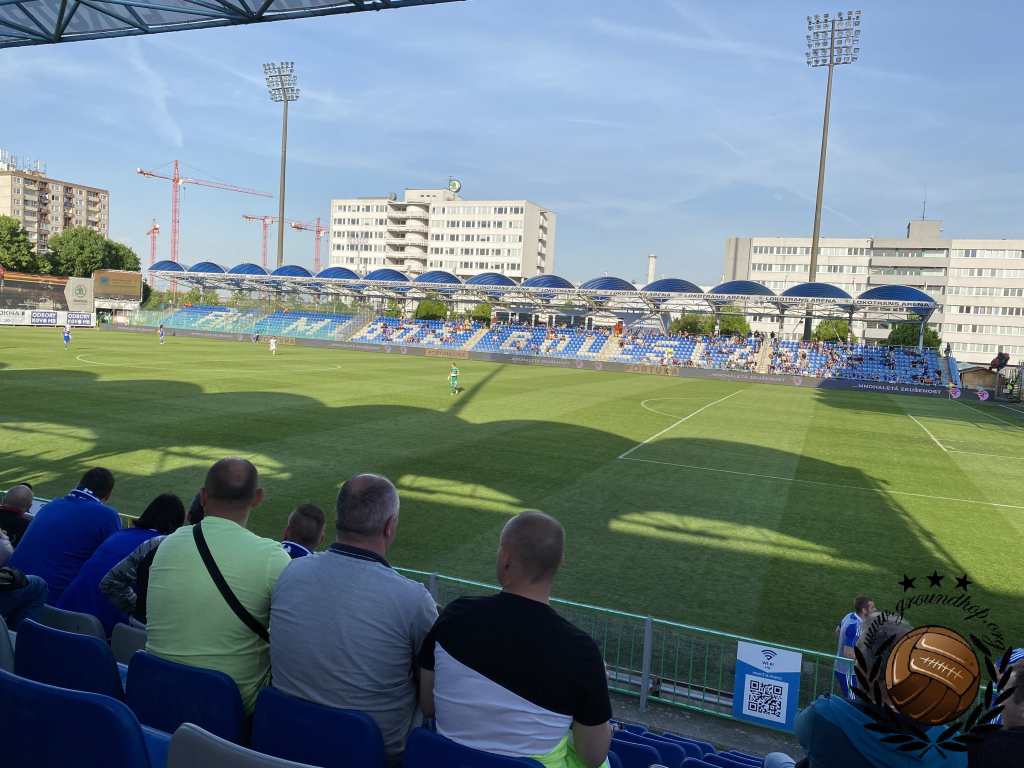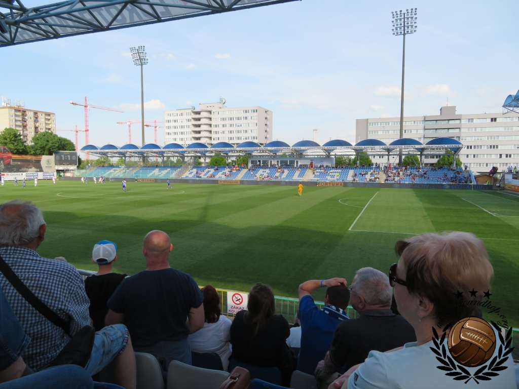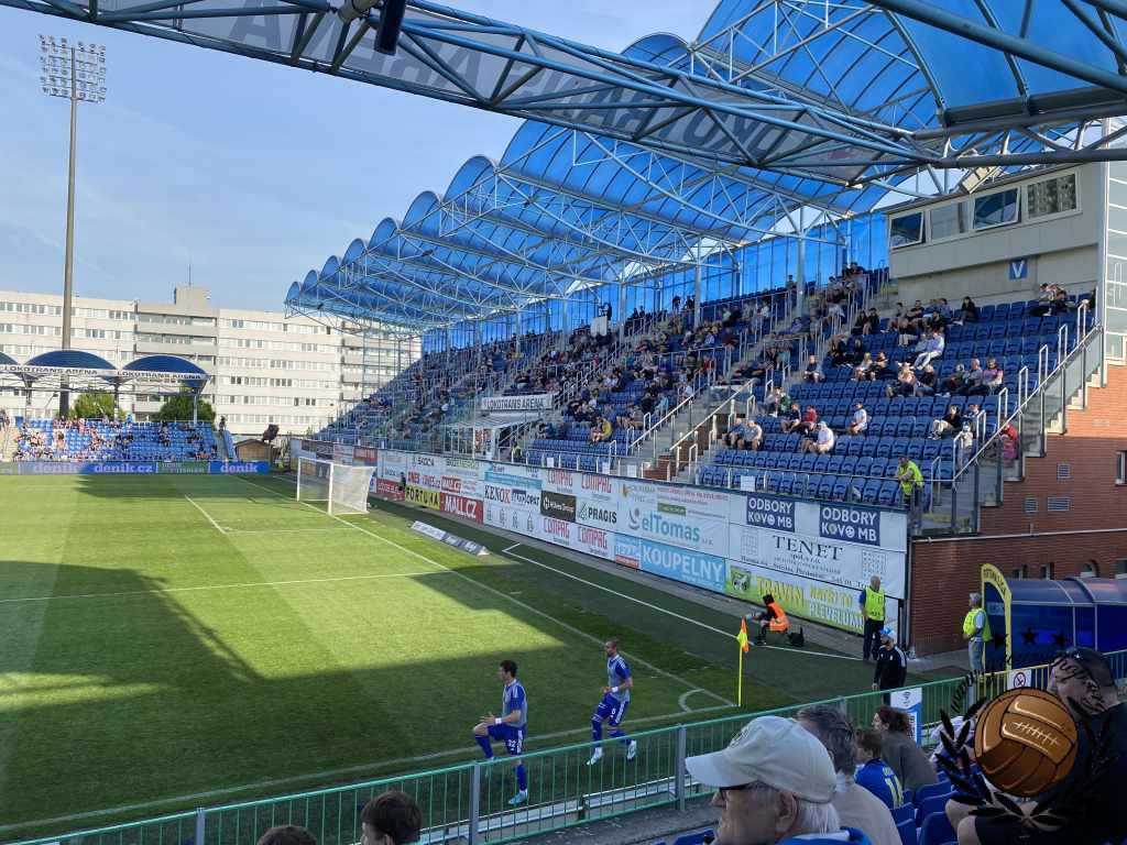 Aangezien we in Mladá Boleslav op de finale van een play-off afgaan, besluiten we om onze kaarten van tevoren alvast te regelen. Waarvoor deze play-off dient weten we nog steeds niet zeker, maar we denken dat ze voor een plekje in de voorronde van de Conference League zijn. Neemt niet weg dat onze kaarten makkelijk op de wedstrijddag zelf geregeld hadden kunnen worden, want er heeft ongeveer 1.500 man de moeite genomen om de plaatselijke FK te zien spelen.