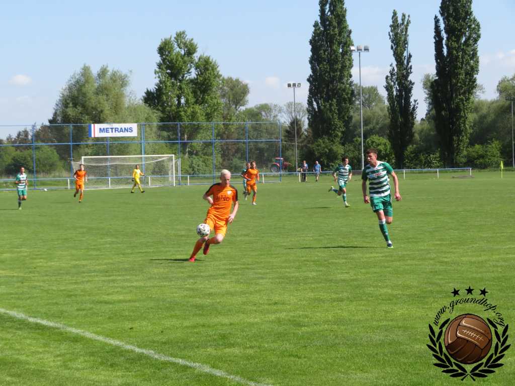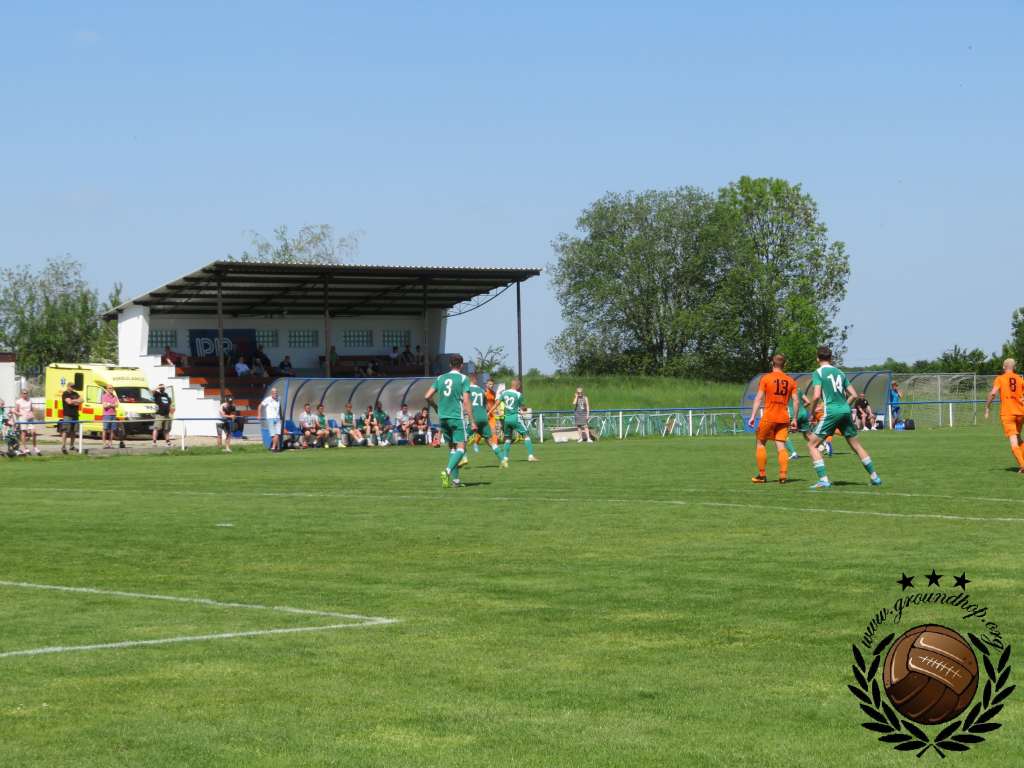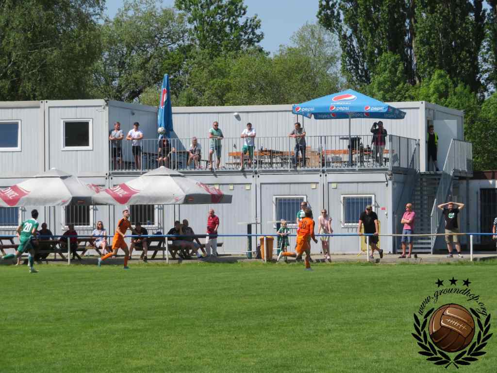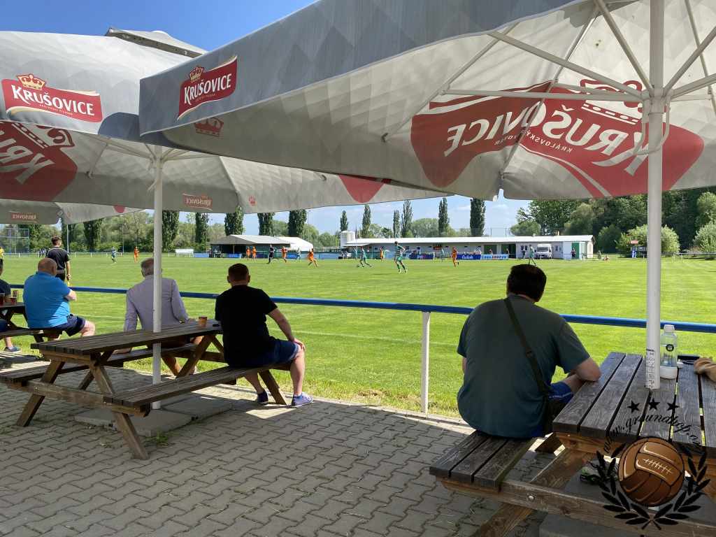 Al rond 10:00 rijden wij het terrein van SK Čechie Uhříněves op, waar volgens betrouwbare bronnen deze wedstrijd zal plaatsvinden. Meteen begaan wij de eerste overtreding, want het terrein oprijden was eigenlijk niet helemaal de bedoeling. In ieder geval niet zonder entreetickets voor dit duel des keizers baard. Het Nederlandse kenteken bracht de Tsjechische steward zodanig de zenuwen (Engels is niet het sterkste punt van de gemiddelde Tsjech) dat hij ons spontaan doorlaat en wij gratis aanwezig kunnen zijn bij deze wedstrijd. De kaartjes hier zijn echter zodanig goedkoop dat wij in de rust nog terug zullen keren om nog een ticket te bemachtigen voor onze verzameling.