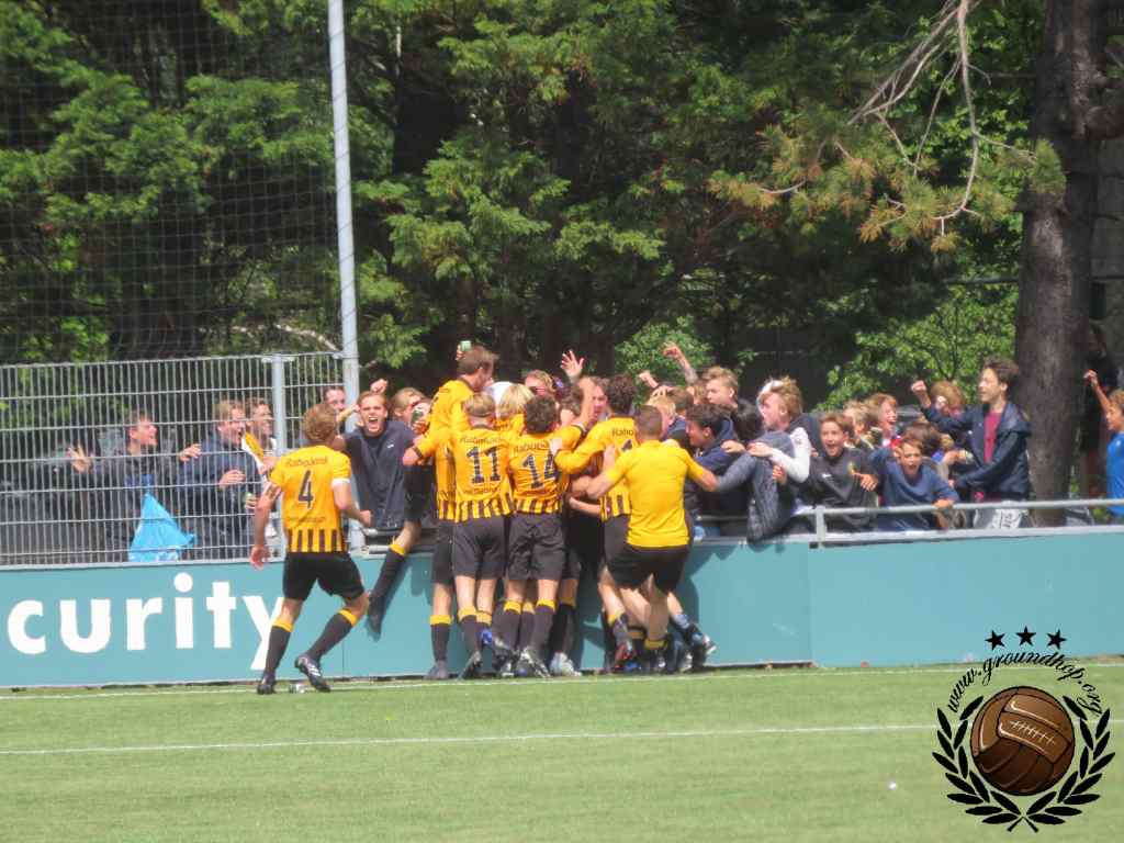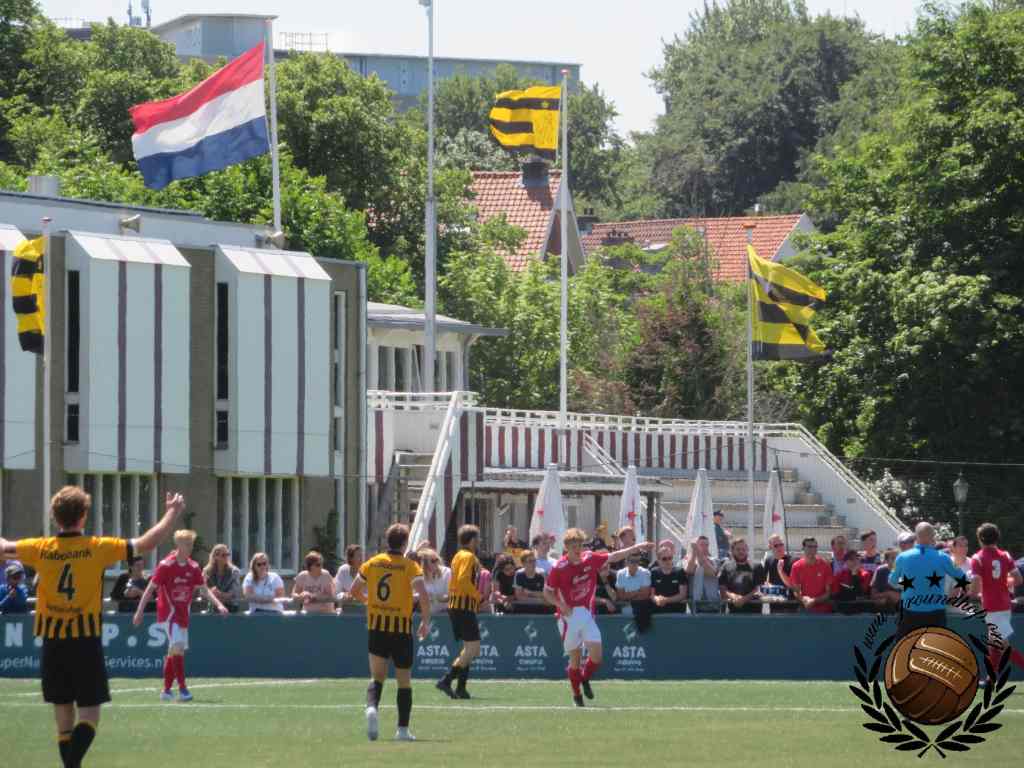 In de tweede helft is het spelbeeld niet anders. De thuisploeg is overduidelijk de betere maar heeft moeite om daadwerkelijk tot het doel van KDO te komen. In de 67e minuut is het dan eindelijk zover wanneer Quinten Jakobs de ban breekt met een knappe kopbal in de korte hoek. Zoals zo vaak schrikt het team dat achterstaat opeens wakker en gaan de gasten ook eindelijk voetballen. De supporters van KDO gaan er nog maar eens extra goed achter staan, al kunnen wij ons nog steeds niet aan de indruk onttrekken dat het een aangeschoten versie van Vak 410 is. Neemt nog steeds niet weg dat ze meer geluid produceren dan verwacht en dat menig amateur van deze groep nog best wat kan leren.