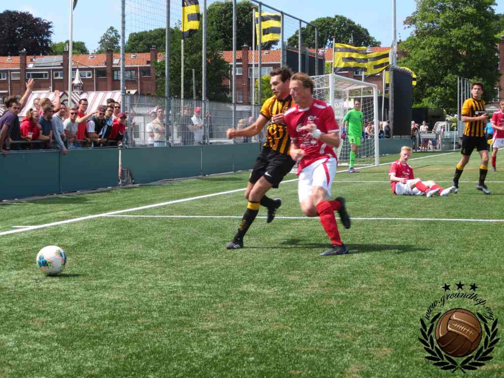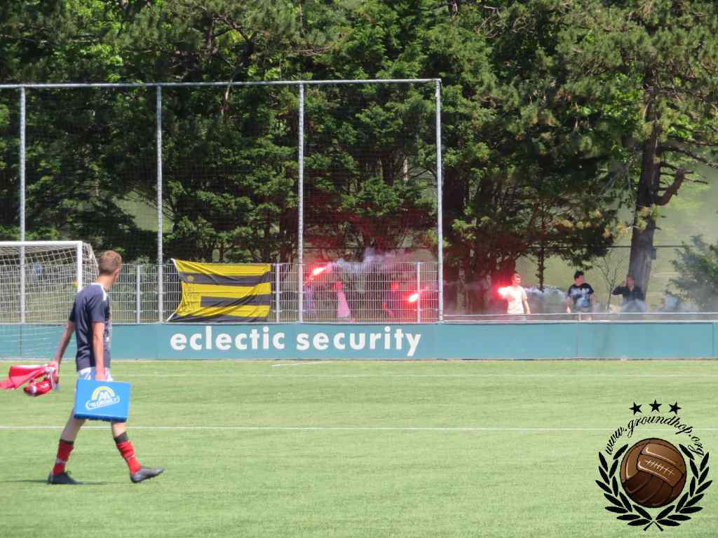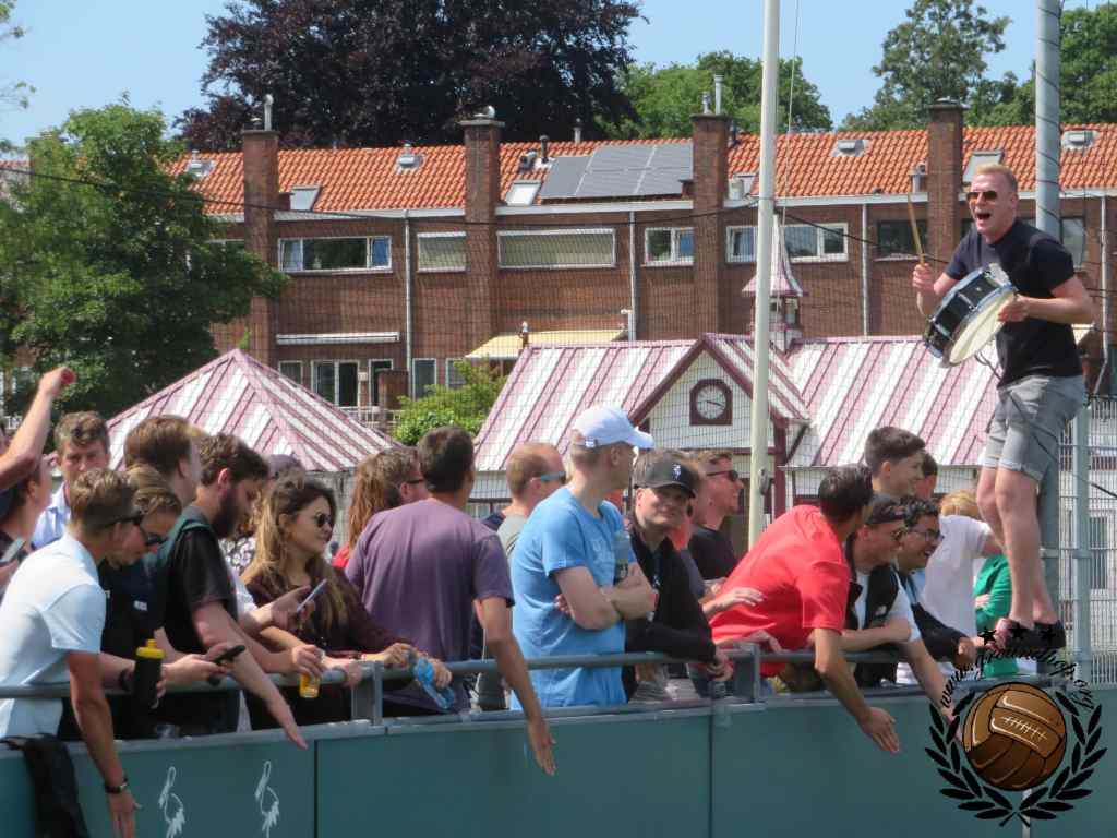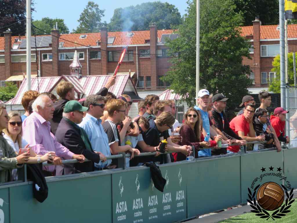 Dat er alleen bier gedronken mag worden langs het cricketveld en niet langs veld 2, valt ons dan wel weer een beetje tegen. Even overwegen we om een carrièreswitch te maken en ons te gaan verdiepen in de wereld van het cricket, maar uiteindelijk drinken we snel onze pint op en nemen plaats langs het kunstgrasveld. Bij HVV wordt er namelijk een lading vuurwerk afgestoken, al mist de actie zijn echte kracht. Alle rook waait namelijk direct het Haagse Bos in, want dat heb je aan de kust, en daarnaast is pyro overdag toch altijd net wat minder dan als deze in de avond wordt ontstoken. Neemt niet weg dat de actie ons uiteraard goed bevalt en het was in ieder geval meer dan de actie van KDO, die zich beperkt tot wat zielige mini-fakkels.