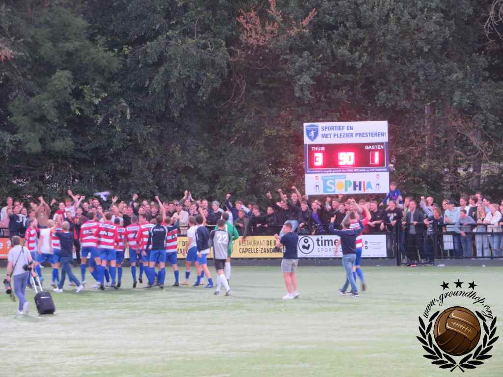 De feestvreugde is groot, al doen wij er niet al te lang over om het sportpark te verlaten. De pitch invasion blijft achterwege en uit de hand lopen doet het op een nog gegeven rode kaart aan de bank van Rozenburg na niet. Wij slaan het promotiefeest in de kantine van Oudewater vandaag even over aangezien we morgen gewoon weer moeten werken. Ook hebben wij nog de play-off tussen Kozakken Boys en GVVV nog op de planning staan, dus we gaan weer een drukke dag tegemoet.