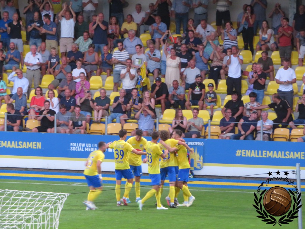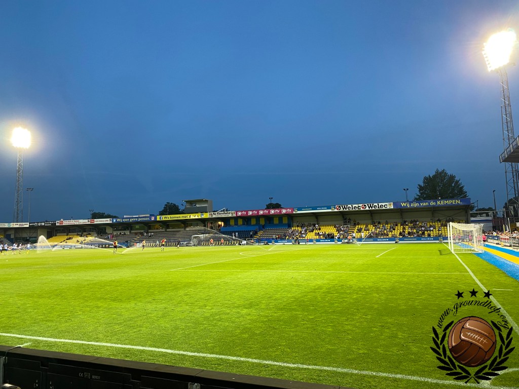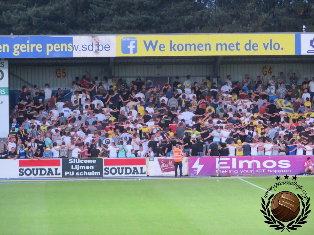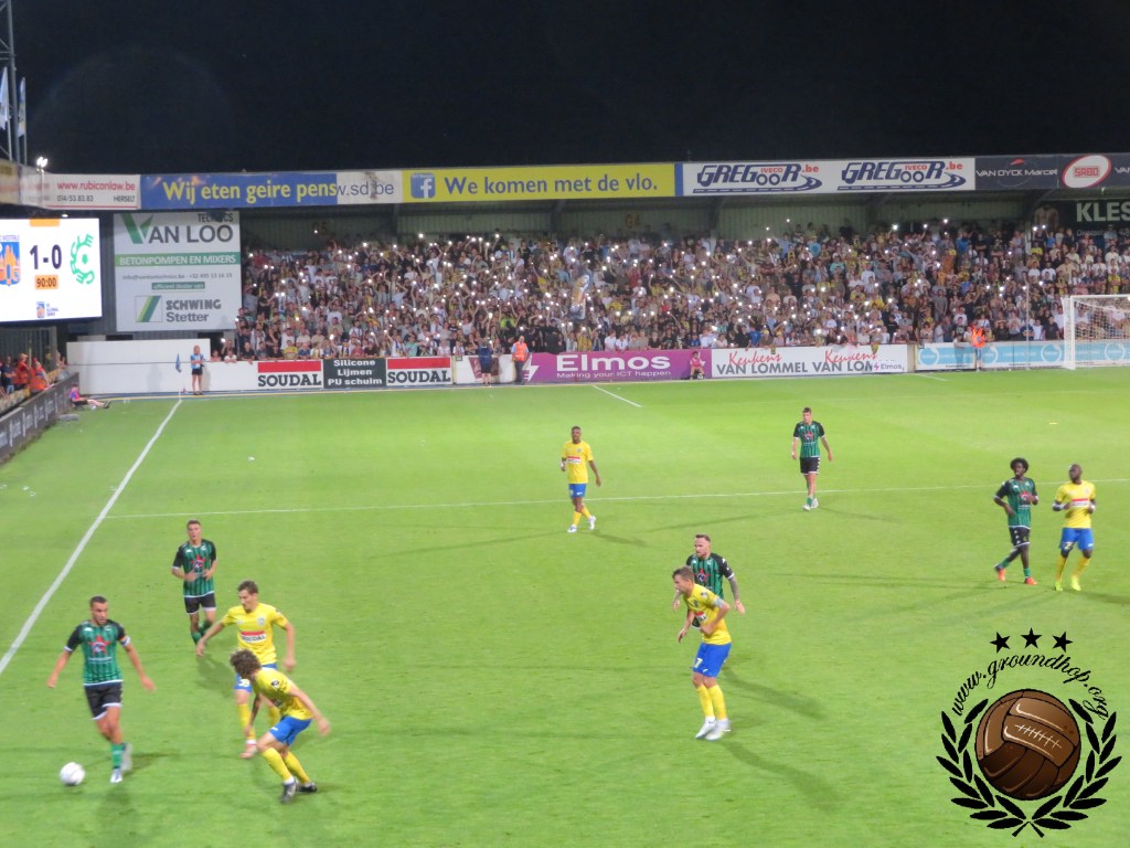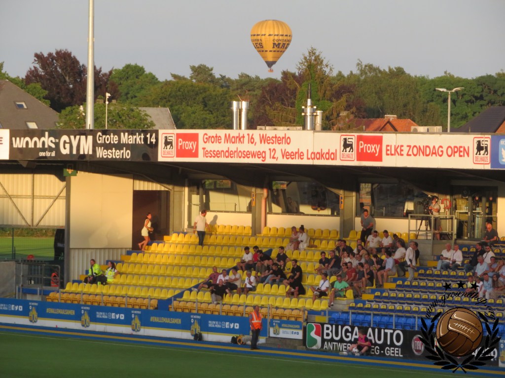 Alsnog ruim van te voren komen we aan bij het Kuipje en duiken daarom maar de Fanvillage in. Dit is niet meer dan een paar snackwagens en biertaps met een Belgische DJ die heel slecht nummertjes achter elkaar op play zet. Het is ien ieder geval feest in Westerlo want voor het eerst in vijf jaar gaan ze weer voetbal op het hoogste niveau zien bij de Kempense club.