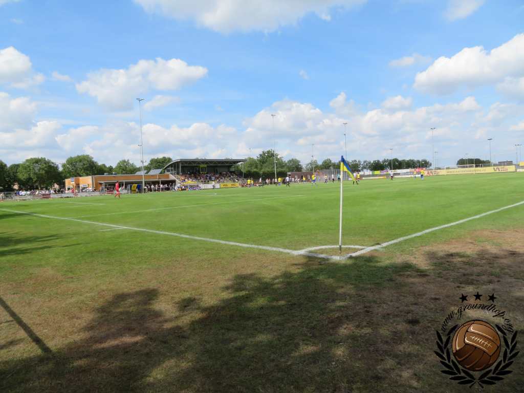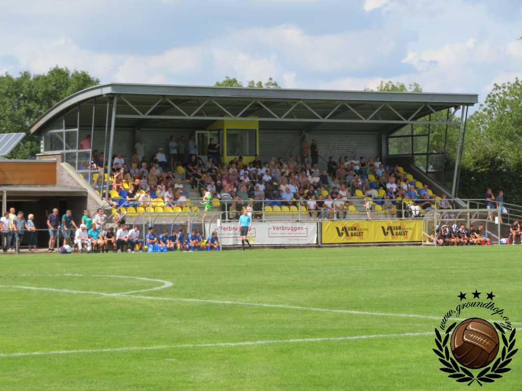 Als we arriveren in Oss zien we dat de parkeerplaats van Sportpark de Rusheuvel dienst doet als opslagplaats voor de kermis die in het centrum van Oss plaats vindt. Na een klein stukje lopen bereiken we dan toch de ingang van Sportpark De Rusheuvel en nog voordat we binnen zijn beginnen we al met het maken van foto’s. Nog voordat we goed en wel langs de lijn staan hebben ze achter de bar al door dat we niet uit Brabant komen. Nadat we eenmaal onze historie hebben uitgelegd staan de wenkbrauwen nog steeds omhoog. Het begrip Groundhoppen is hier in Oss duidelijk nog niet zo bekend als dat we zouden verwachten.